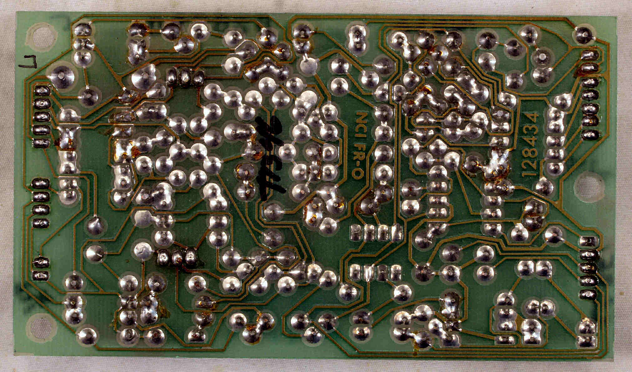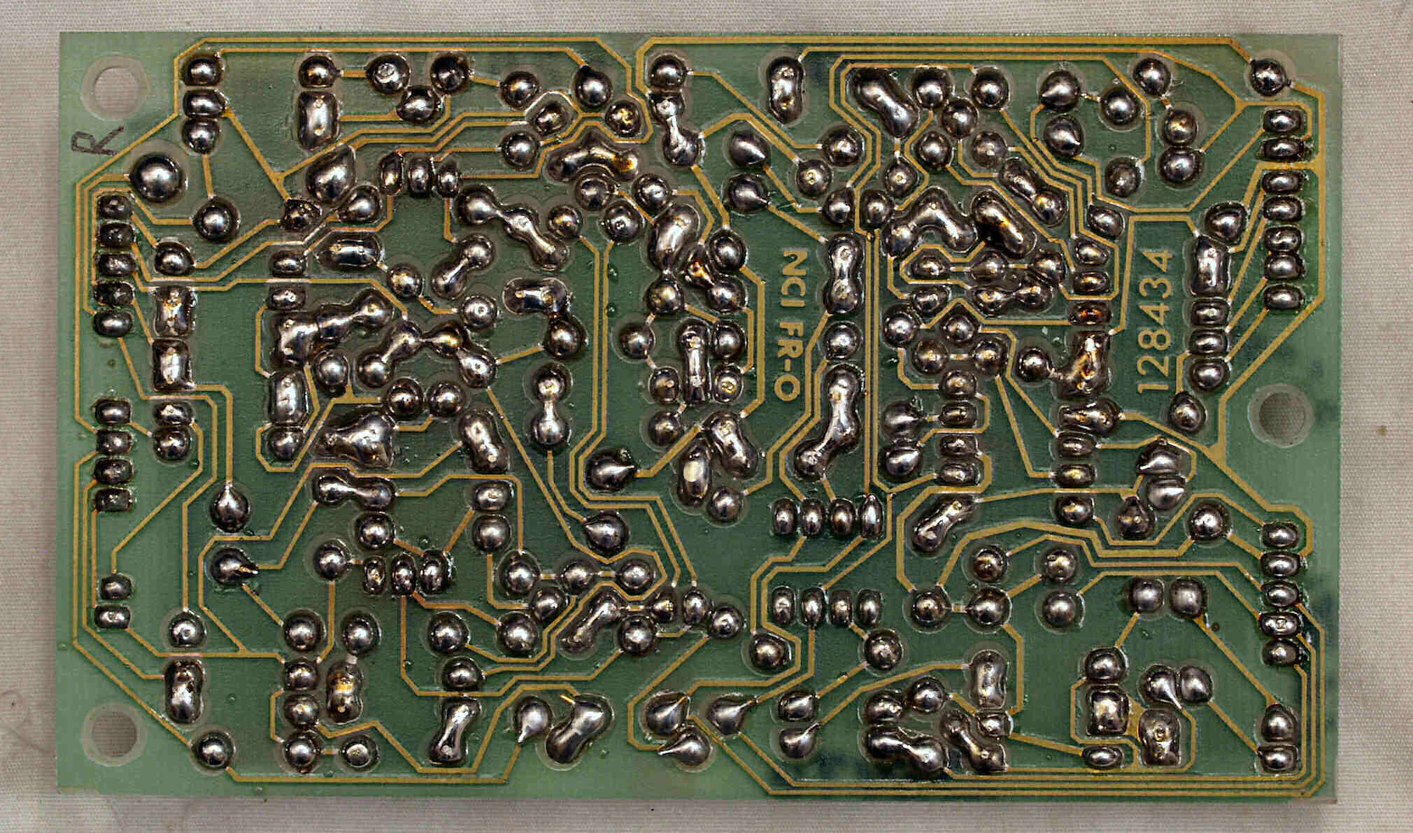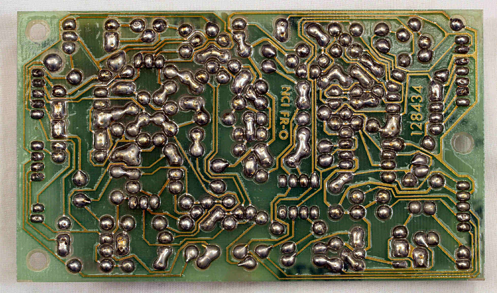 C1D. 修理(半田補正)後 R−AMP基板裏。 半田を全部やり直す。 | ||||||||||||||||||||||||||||||||||