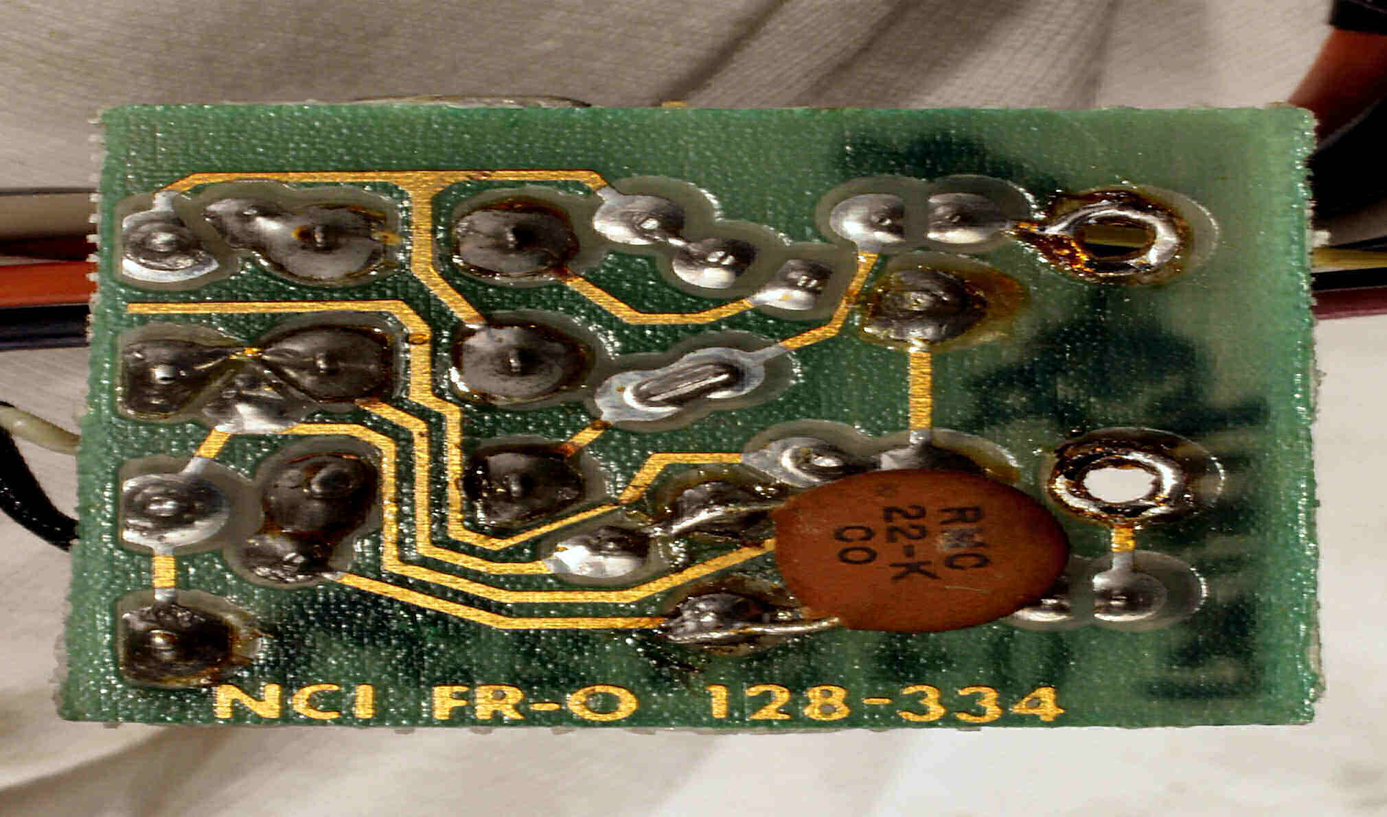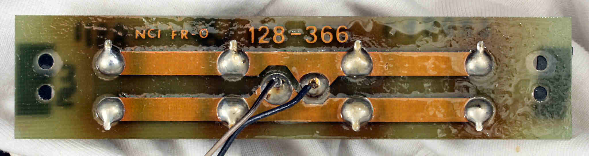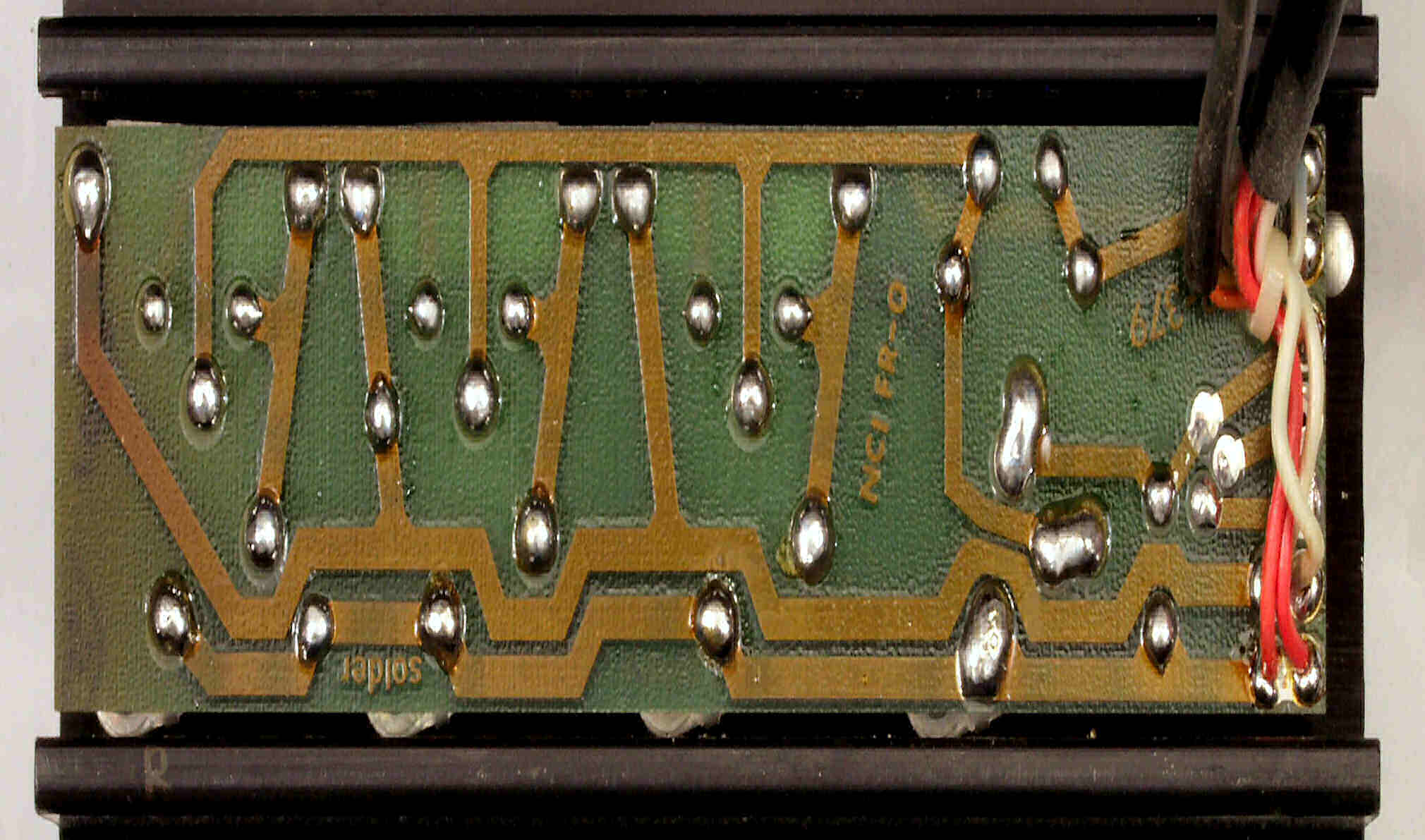 C5F. 完成R側メータ・イルミネーション・ランプ基板裏。 洗浄後、防湿剤を塗布。 | ||||||||||||||||||||||||||||||||||