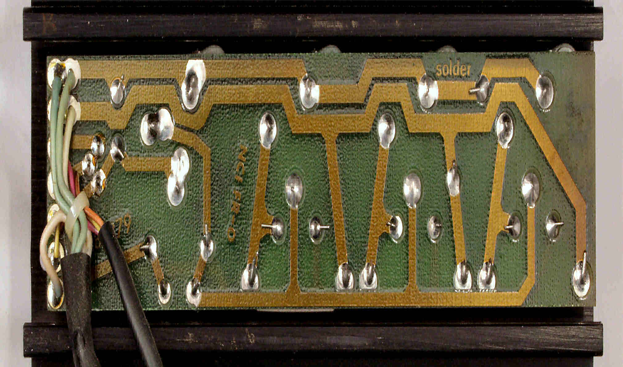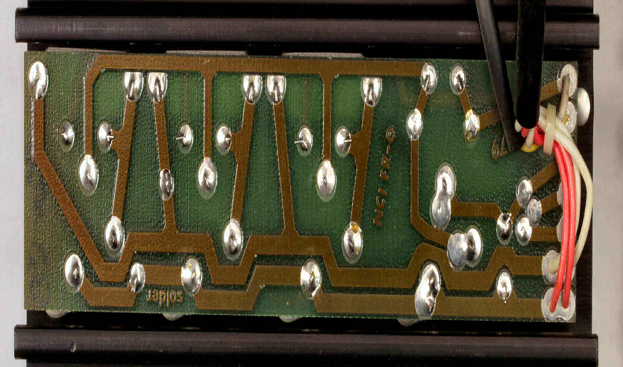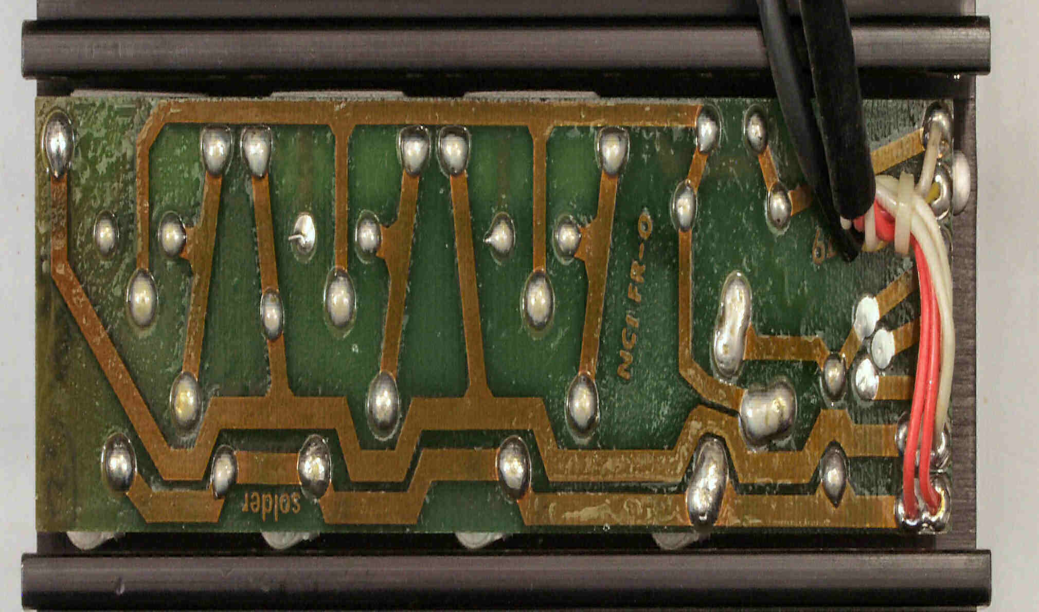 C5E. 修理(半田補正)後 R側メータ・イルミネーション・ランプ基板裏。 半田を全部やり直す。 | ||||||||||||||||||||||||||||||||||