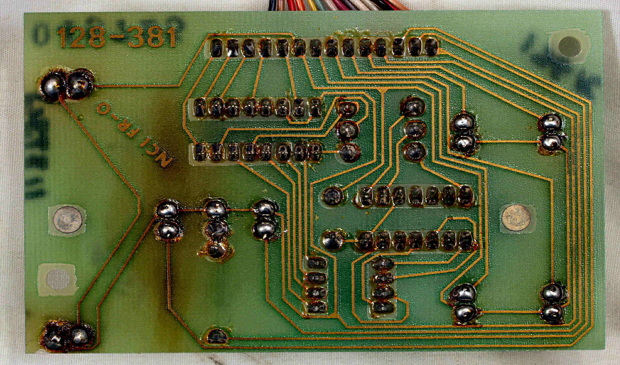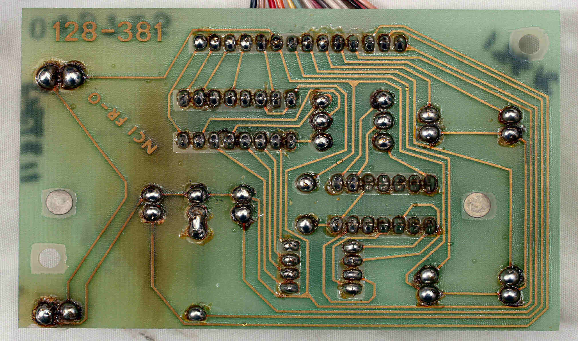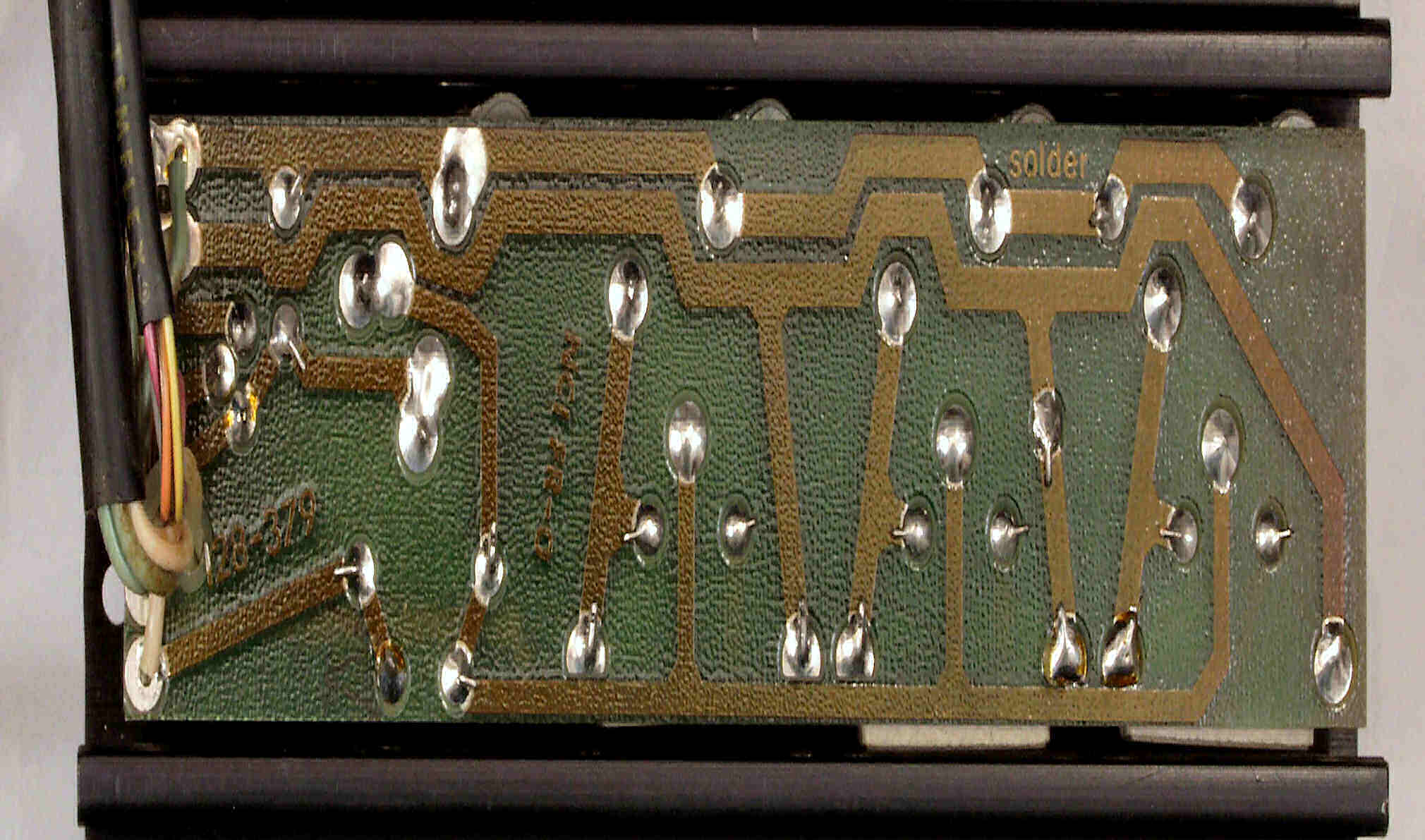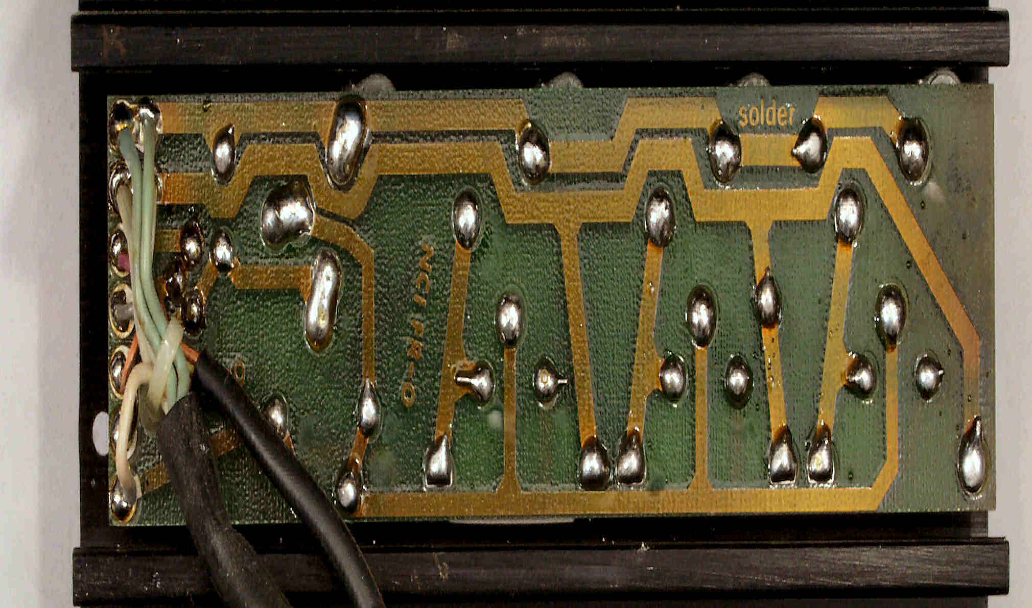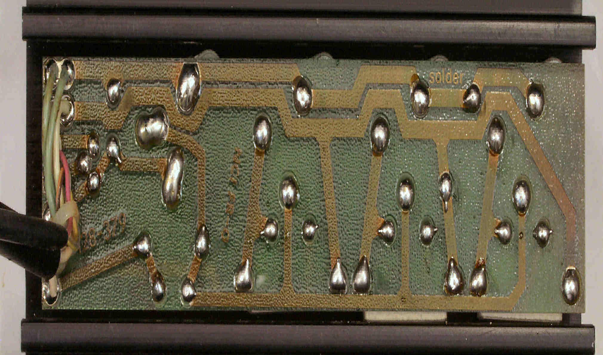 C5H. 修理(半田補正)後 L側メータ・イルミネーション・ランプ基板裏。 半田を全部やり直す。 | ||||||||||||||||||||||||||||||||||
