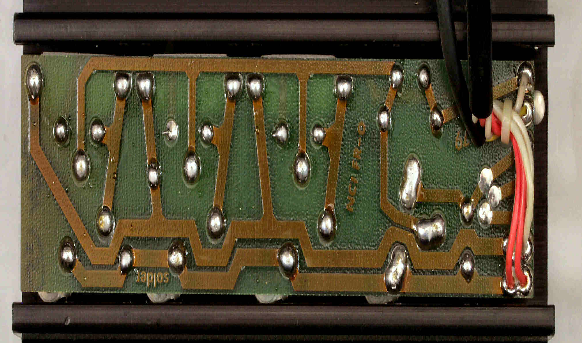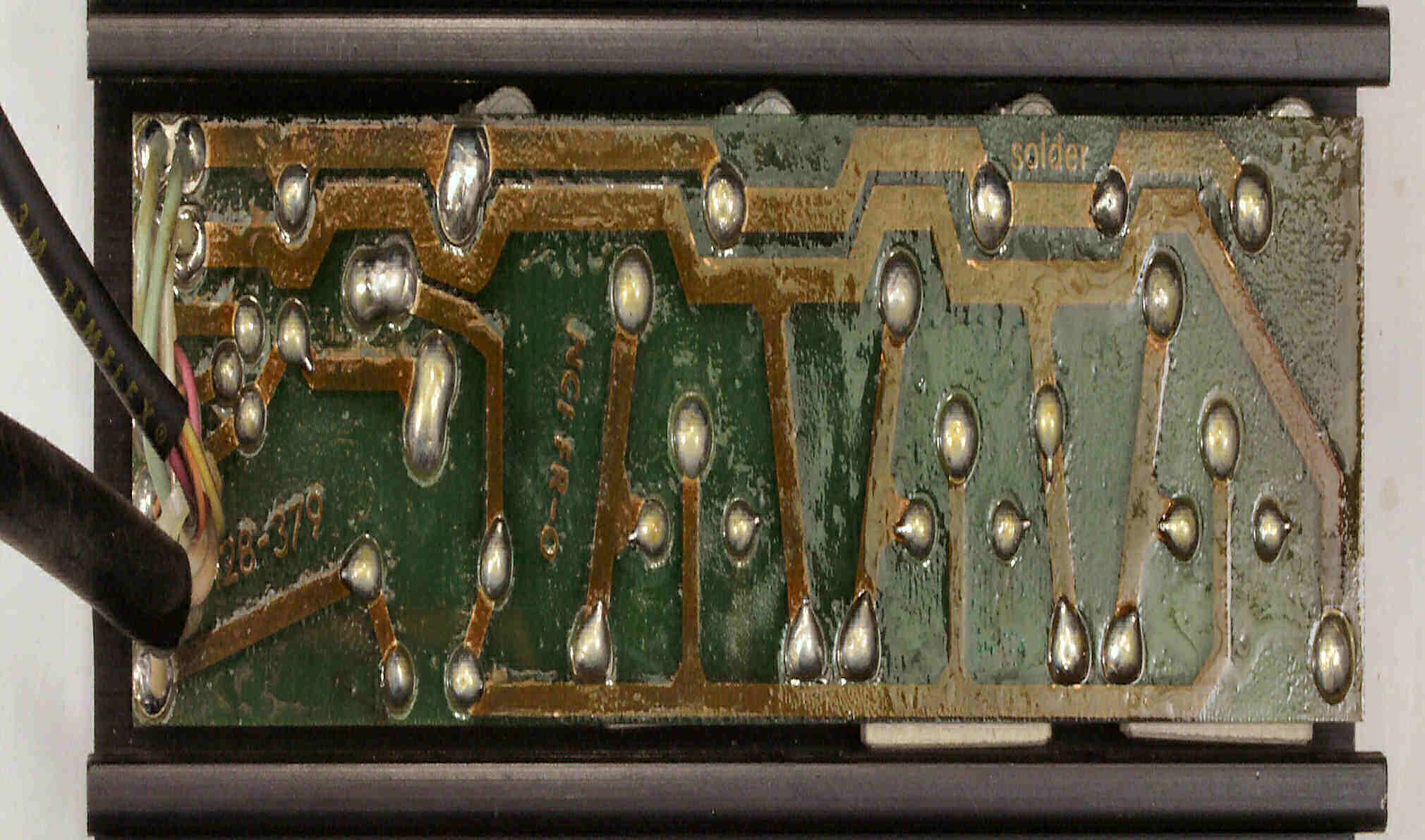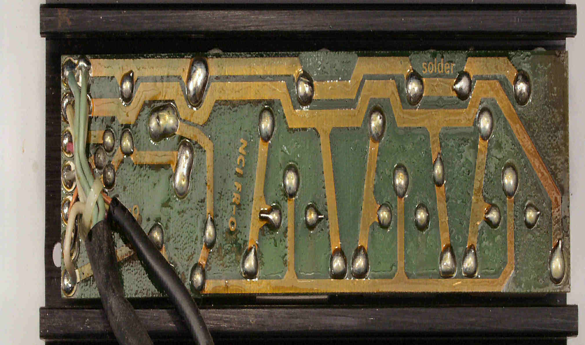 C4D. 修理(半田補正)後 VU−AMP基板裏、基板銅箔を補修する。 半田を全部やり直す。 | ||||||||||||||||||||||||||||||||||