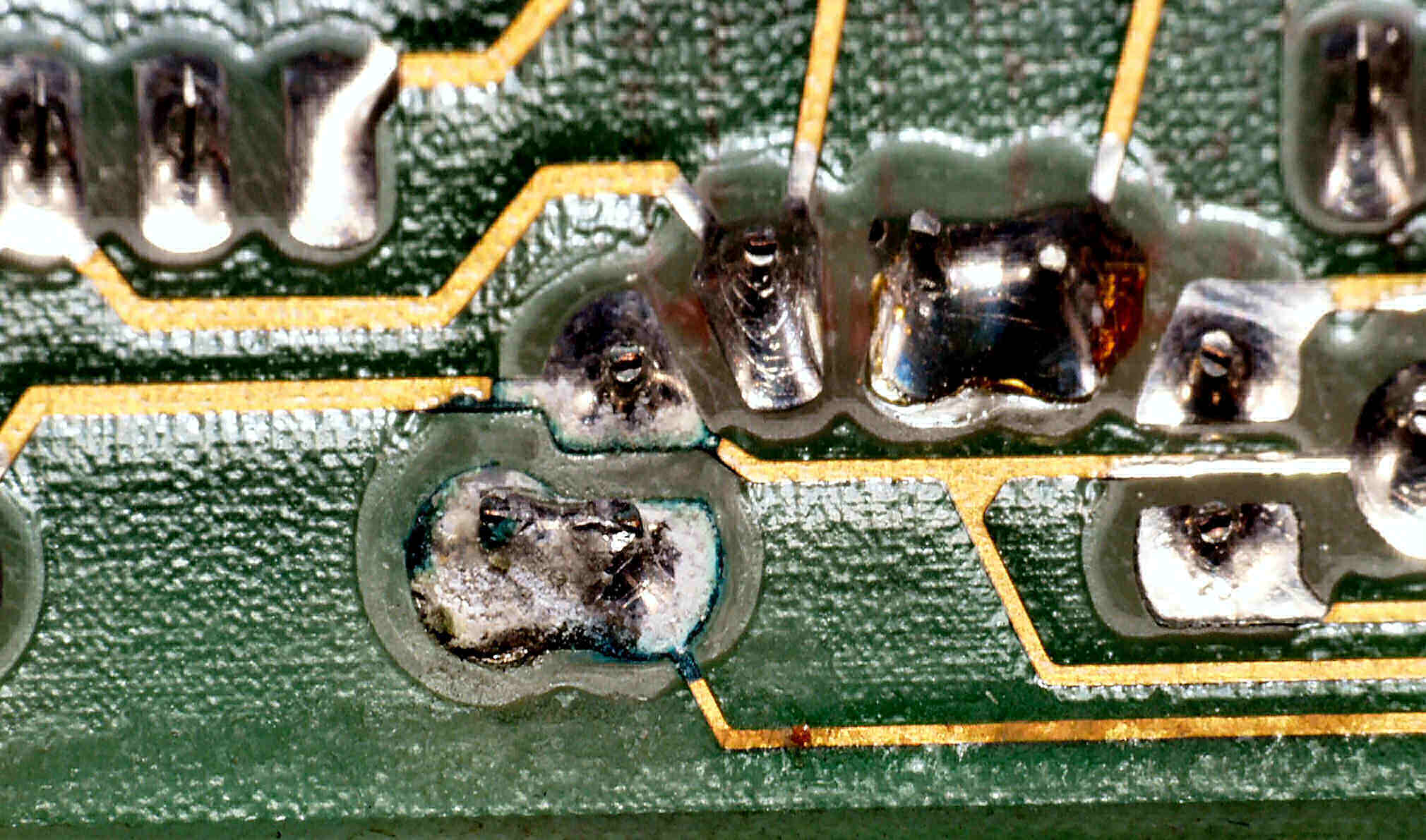 A6B. 修理前点検中 定電圧・制御基板の腐食ケ所 | ||||||||||||||||||||||||||||||||||