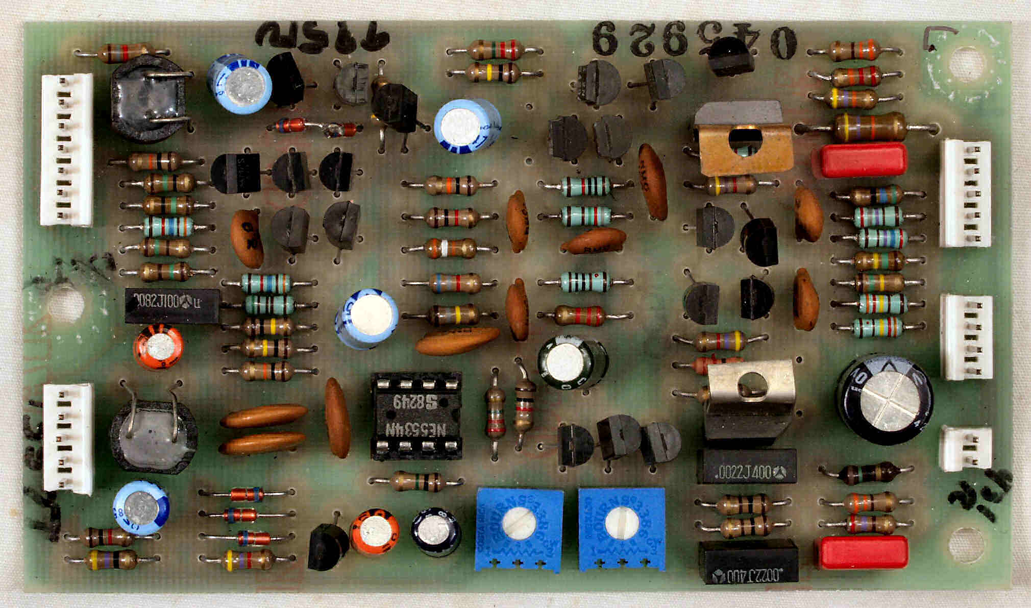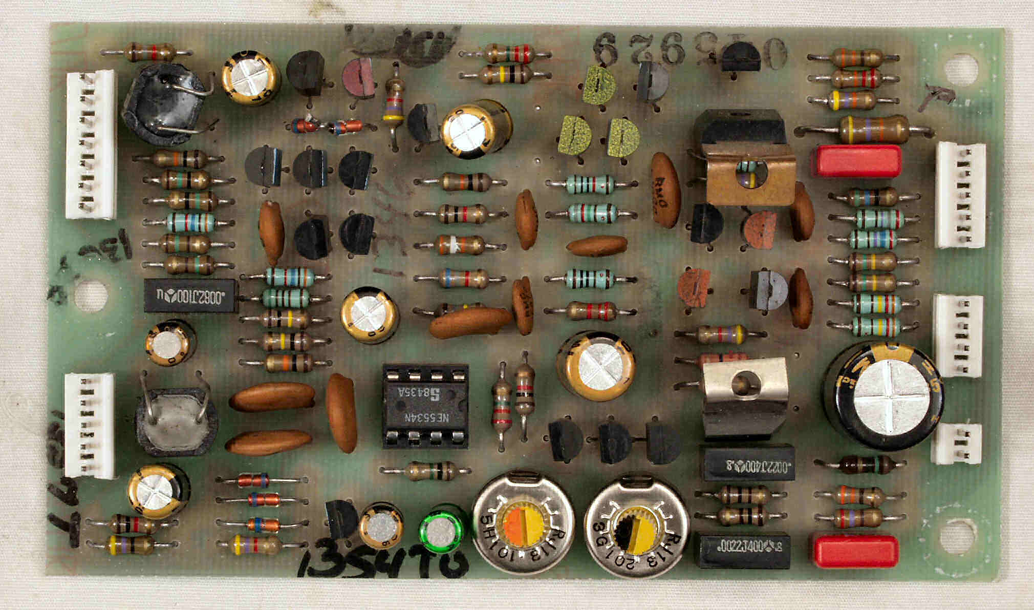 C1B. 修理後 R−AMP基板 OP−AMP(撮影後)、電解コンデンサー9個、半固定VR2個交換 | ||||||||||||||||||||||||||||||||||