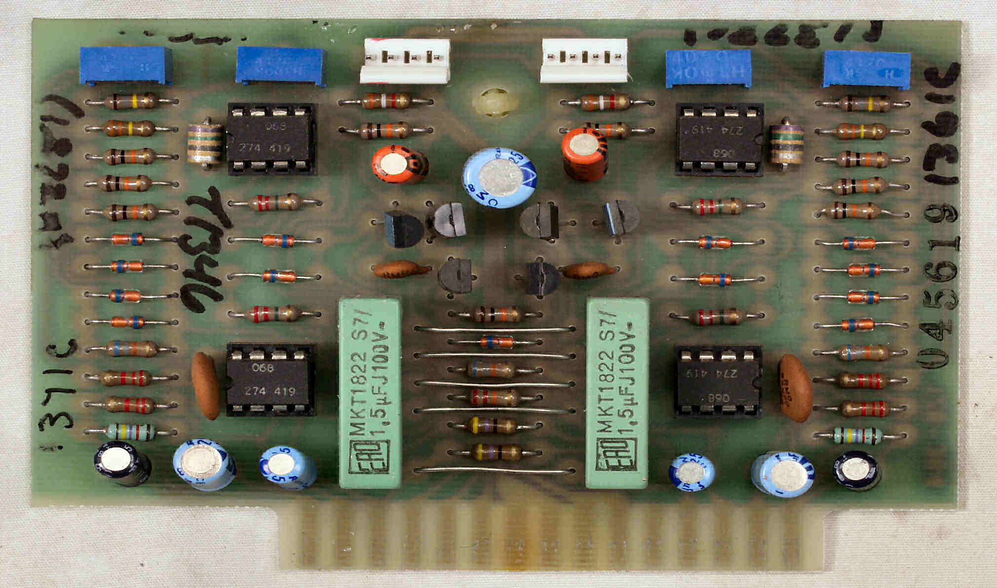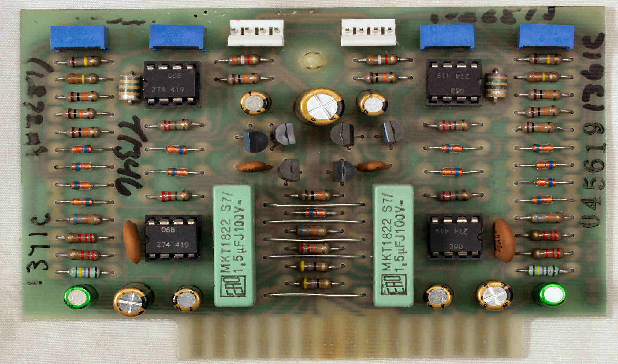 C2B. 修理後 L−AMP基板 OP−AMP(撮影後)、電解コンデンサー9個、半固定VR2個交換 | ||||||||||||||||||||||||||||||||||