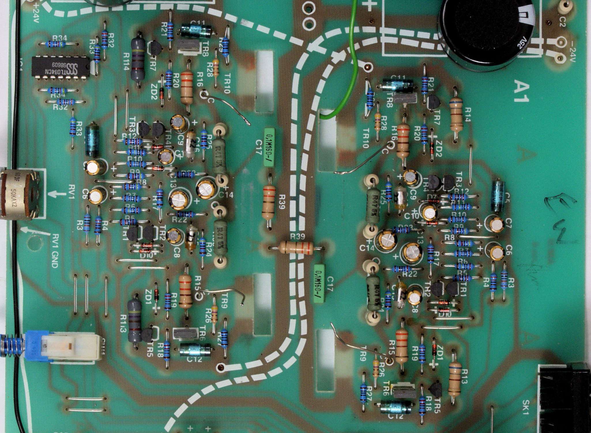 C12. 修理後 基板 電解コンデンサー31個、ダイオード4個、フイルムコンデンサー4個交換
