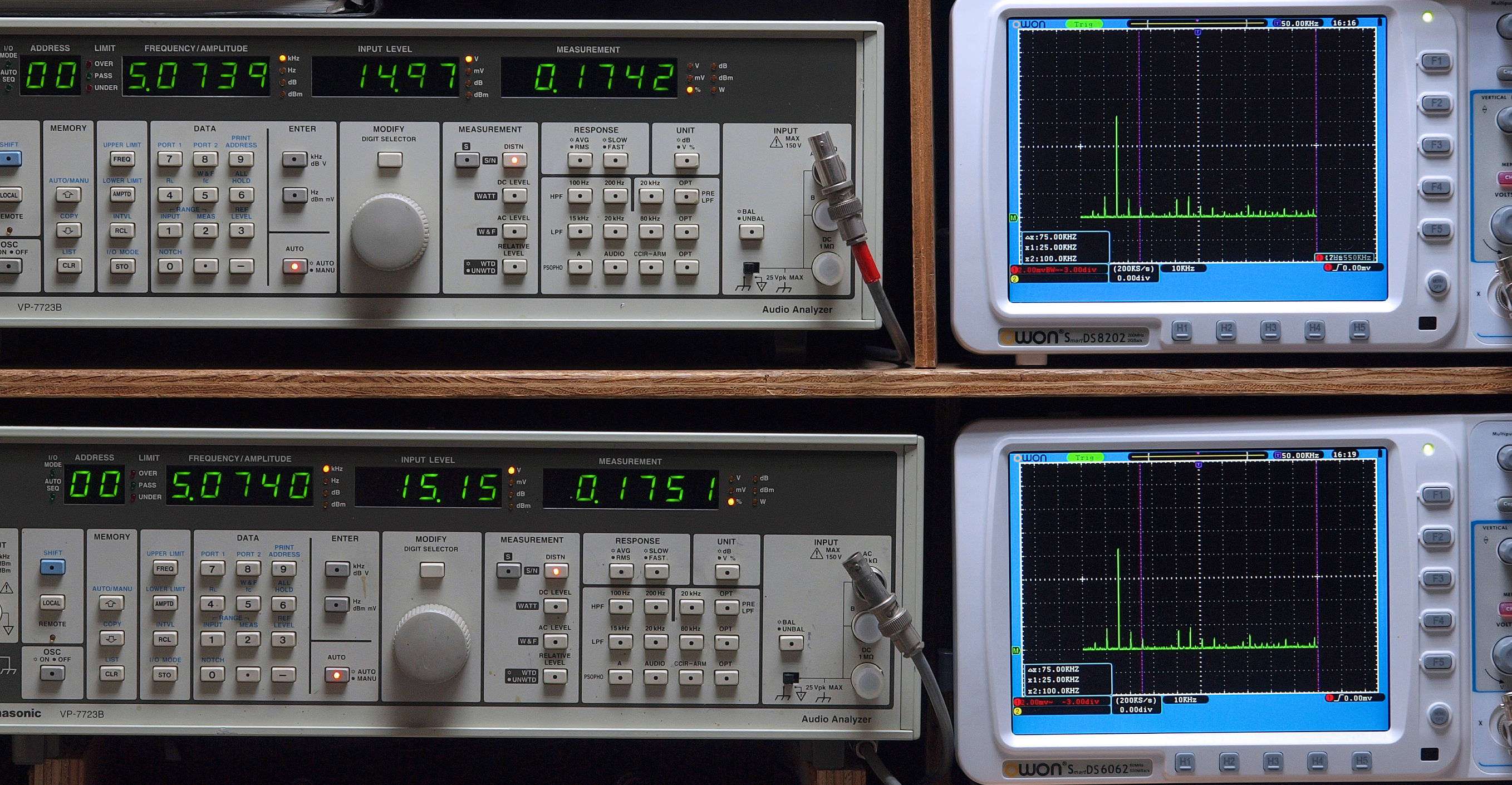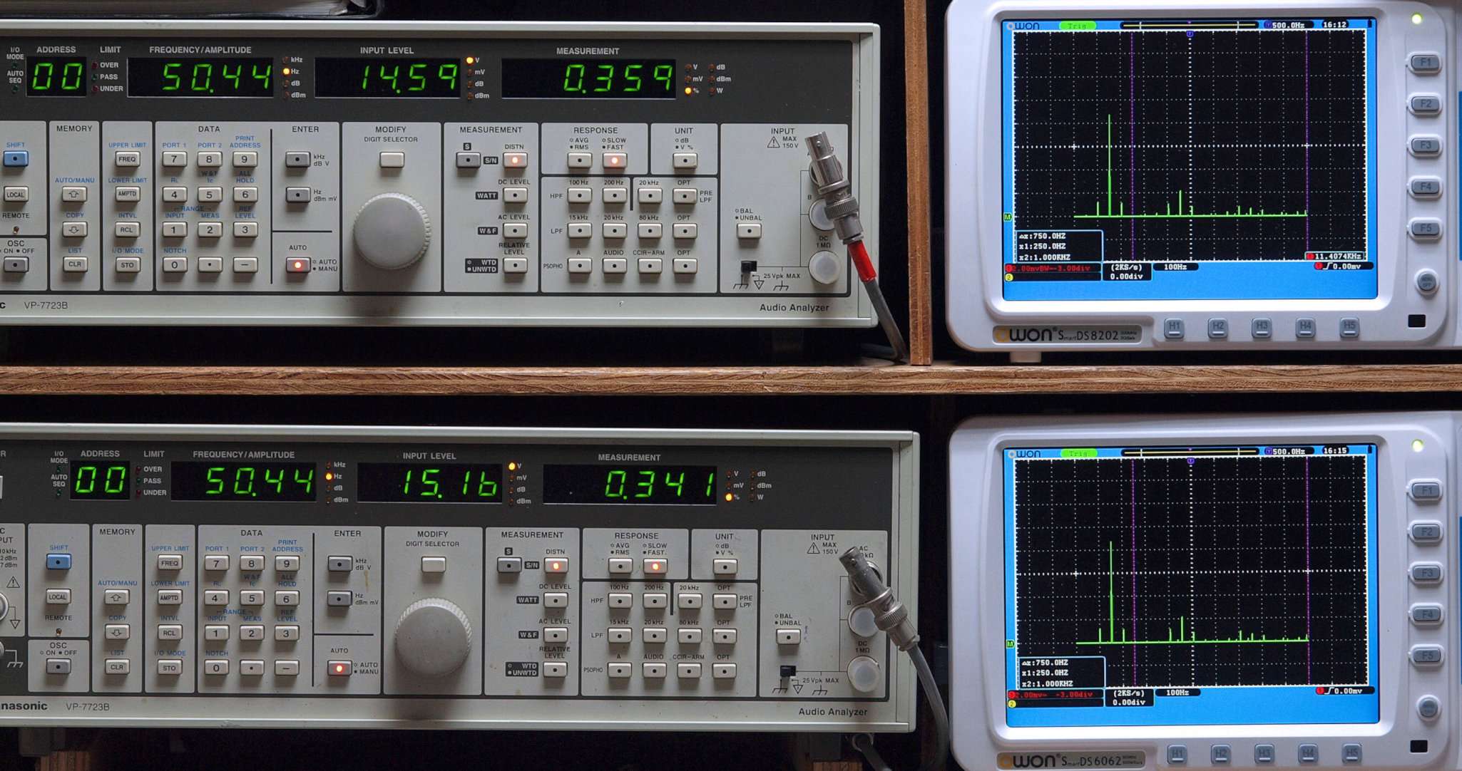 よって、ダイアル設定出力レベルより低くなります。測定機器の仕様や整備の様子はこちら、「VP−7723B」「VP−7201A」。 FFT画面の見方はこちら。