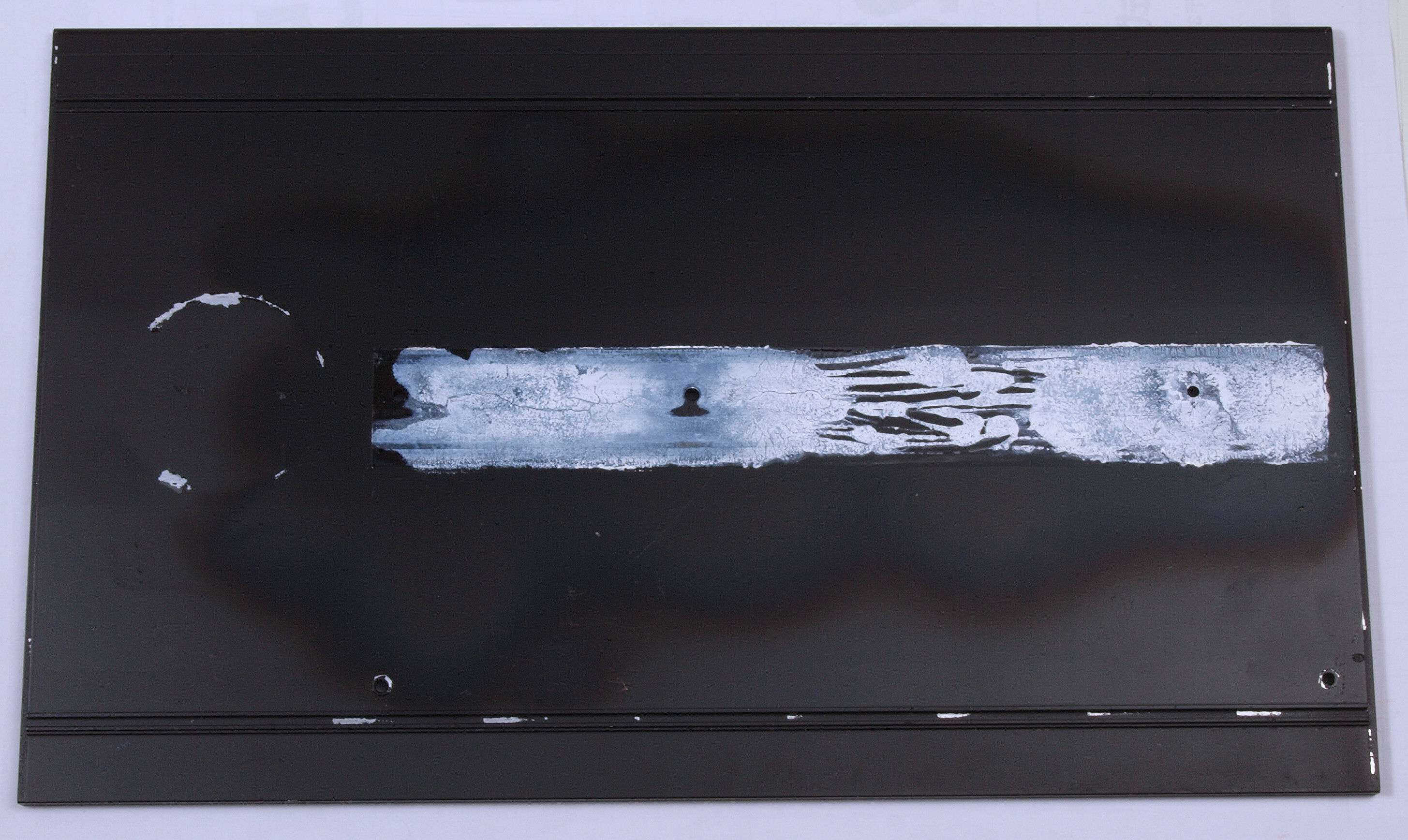 A45. 点検中、 電源電解コンデンサー2の被覆が熱で剥け始めている。