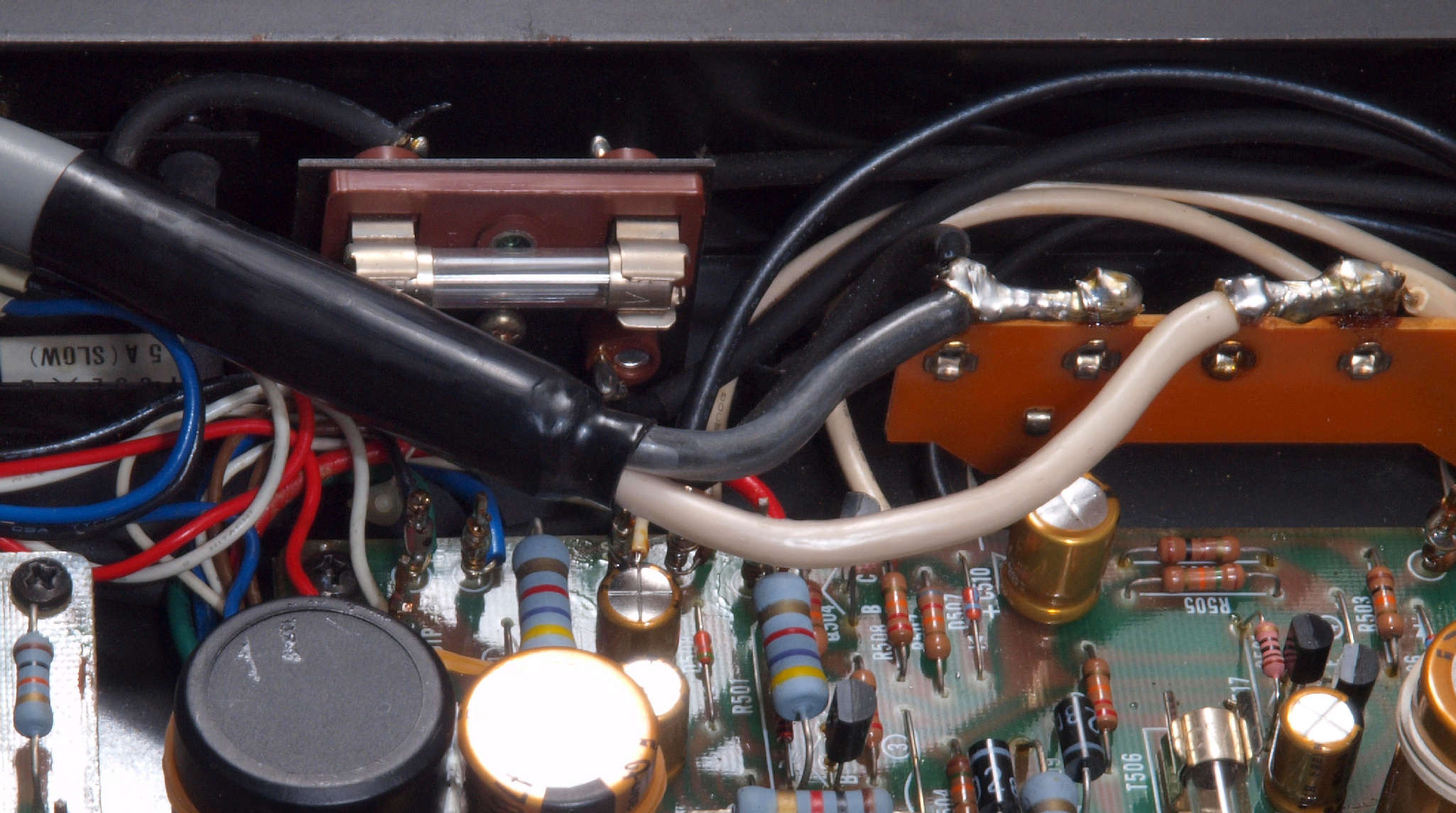| CA6. 修理後 R側ドライブ基板−電源基板へのラッピング線に半田を浸み込ませる |