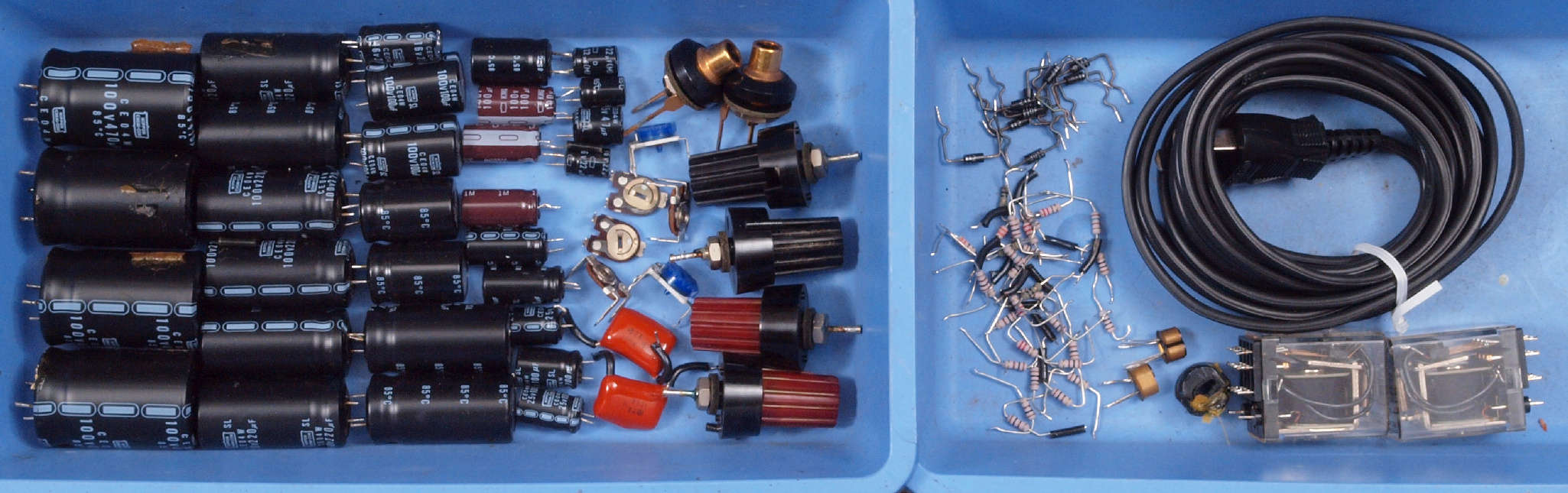 | C22. 修理後 L側ドライブ基板 初段FET、バランス/バイアス調整用半固定VR3個、SP接続リレー交換 ヒューズ入り抵抗全部、電解コンデンサー11個交換。 |
