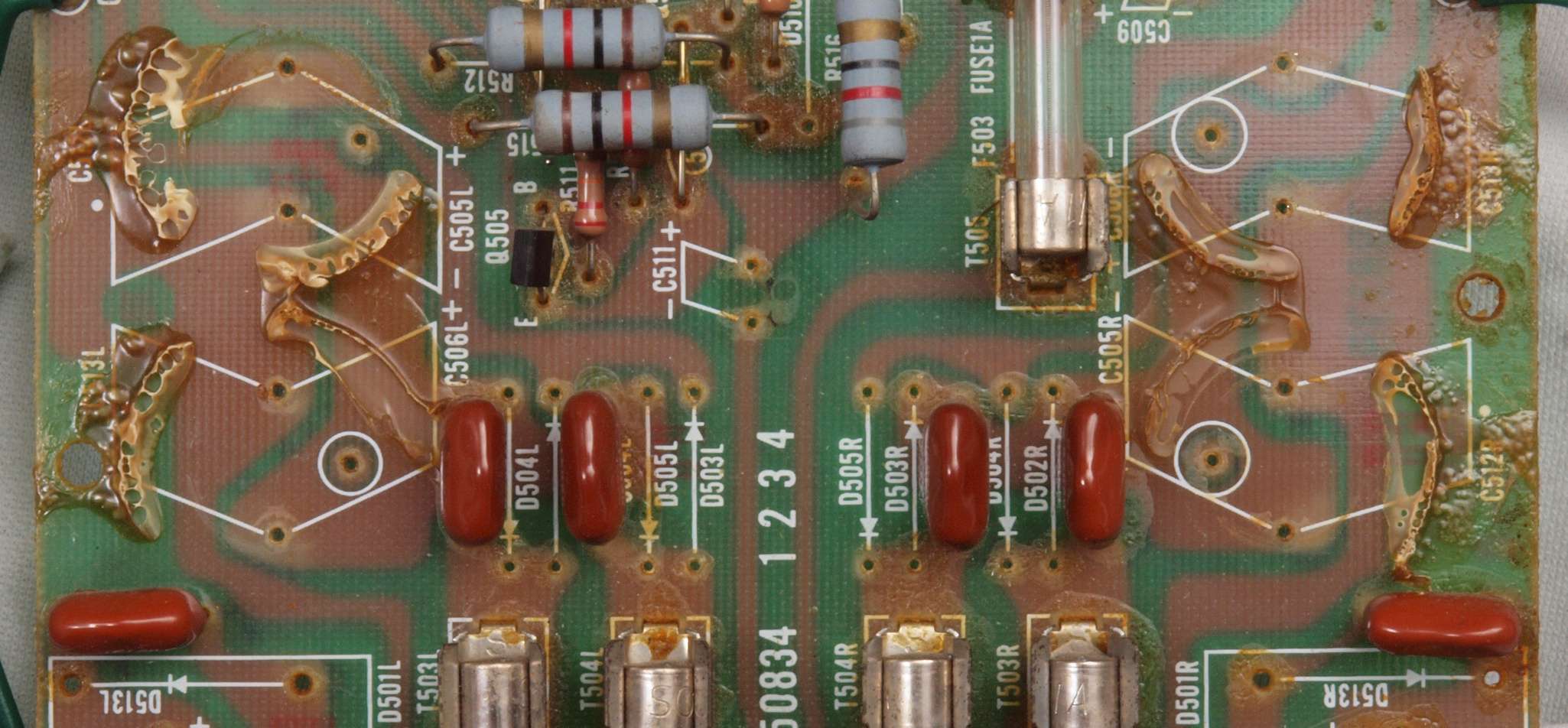 ヒューズ入り抵抗全部、電解コンデンサー11個、足黒TR(トランジスター)1個交換。