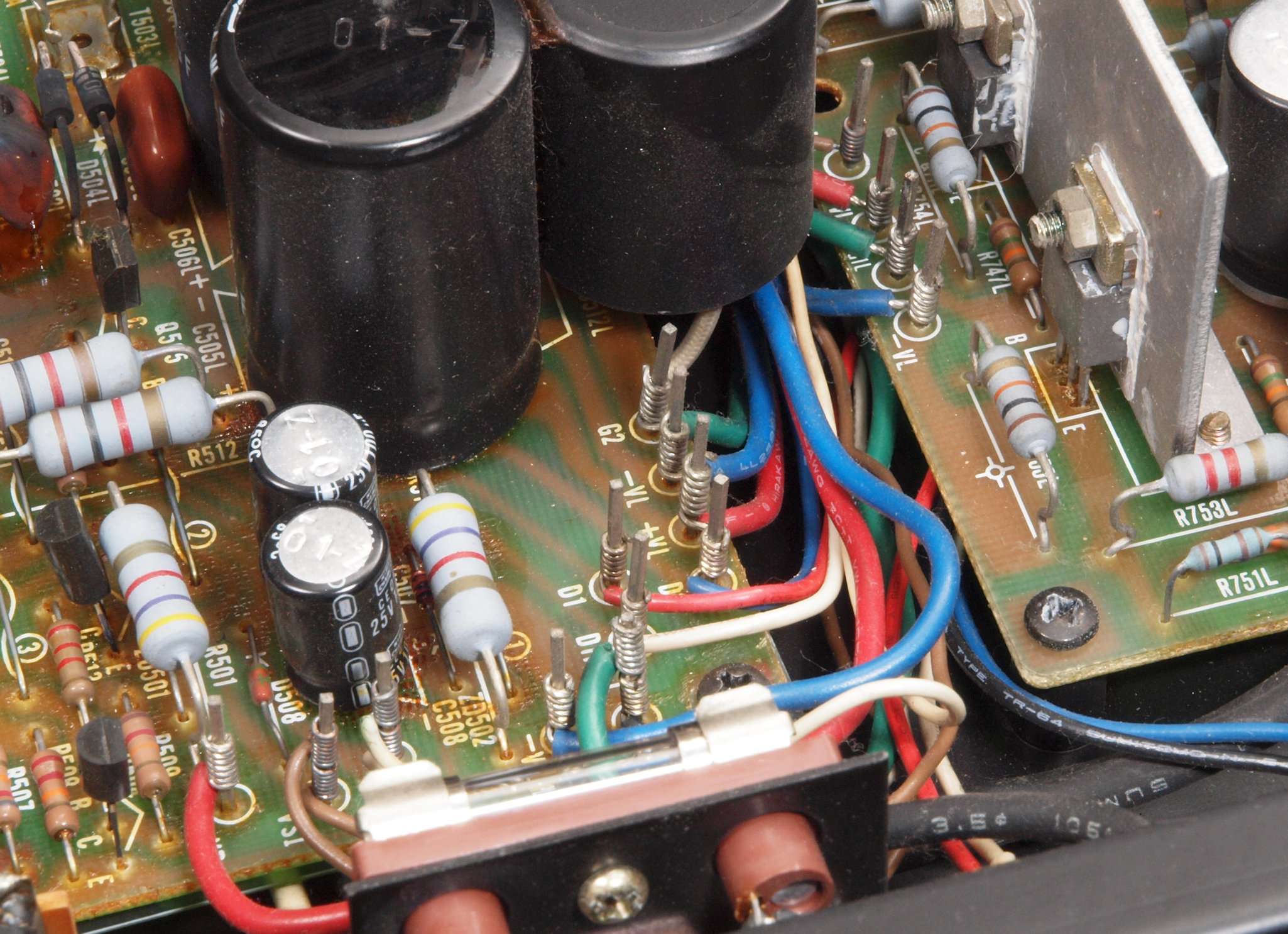 | CA5. 修理前 R側ドライブ基板−電源基板へのラッピング線 |