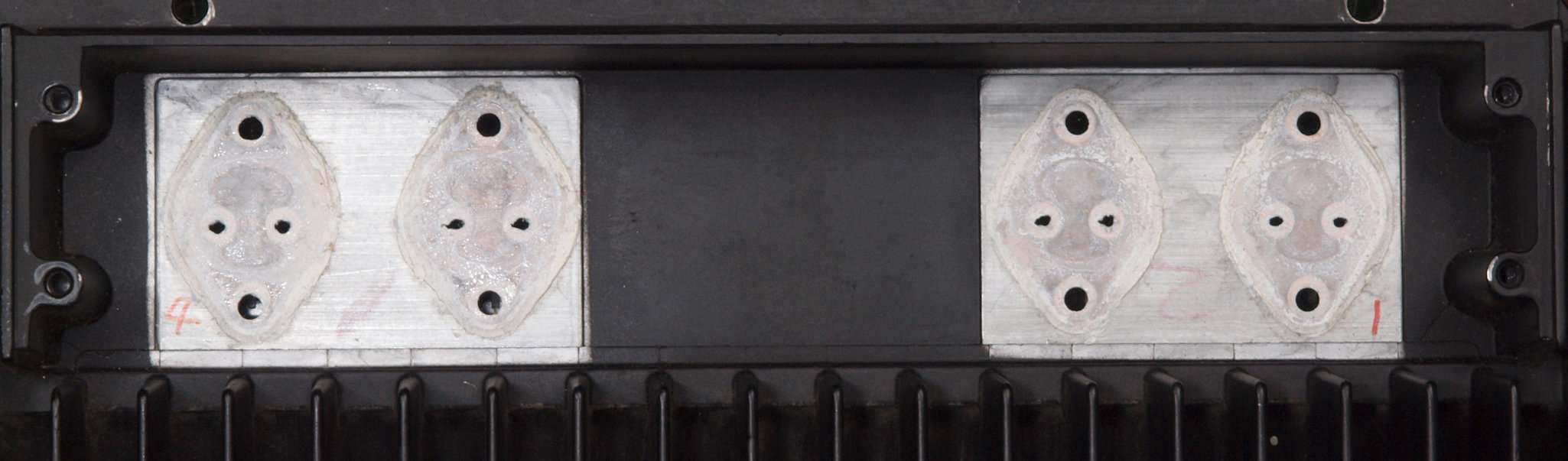 | C31. 修理中 R側終段FET(電界効果トランジスター)周りの埃。 |