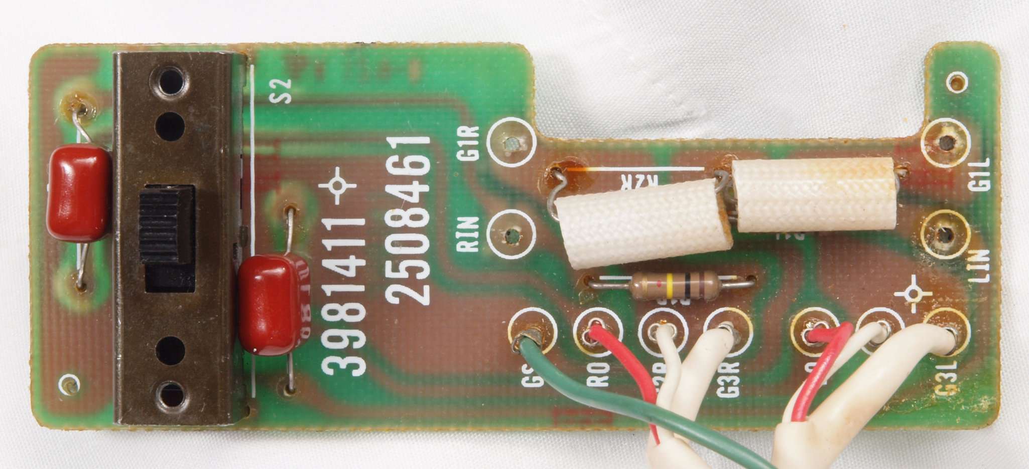 | C68. 修理中 入力RCA端子基板裏 L側もW−SWにする為、基板改造。 |