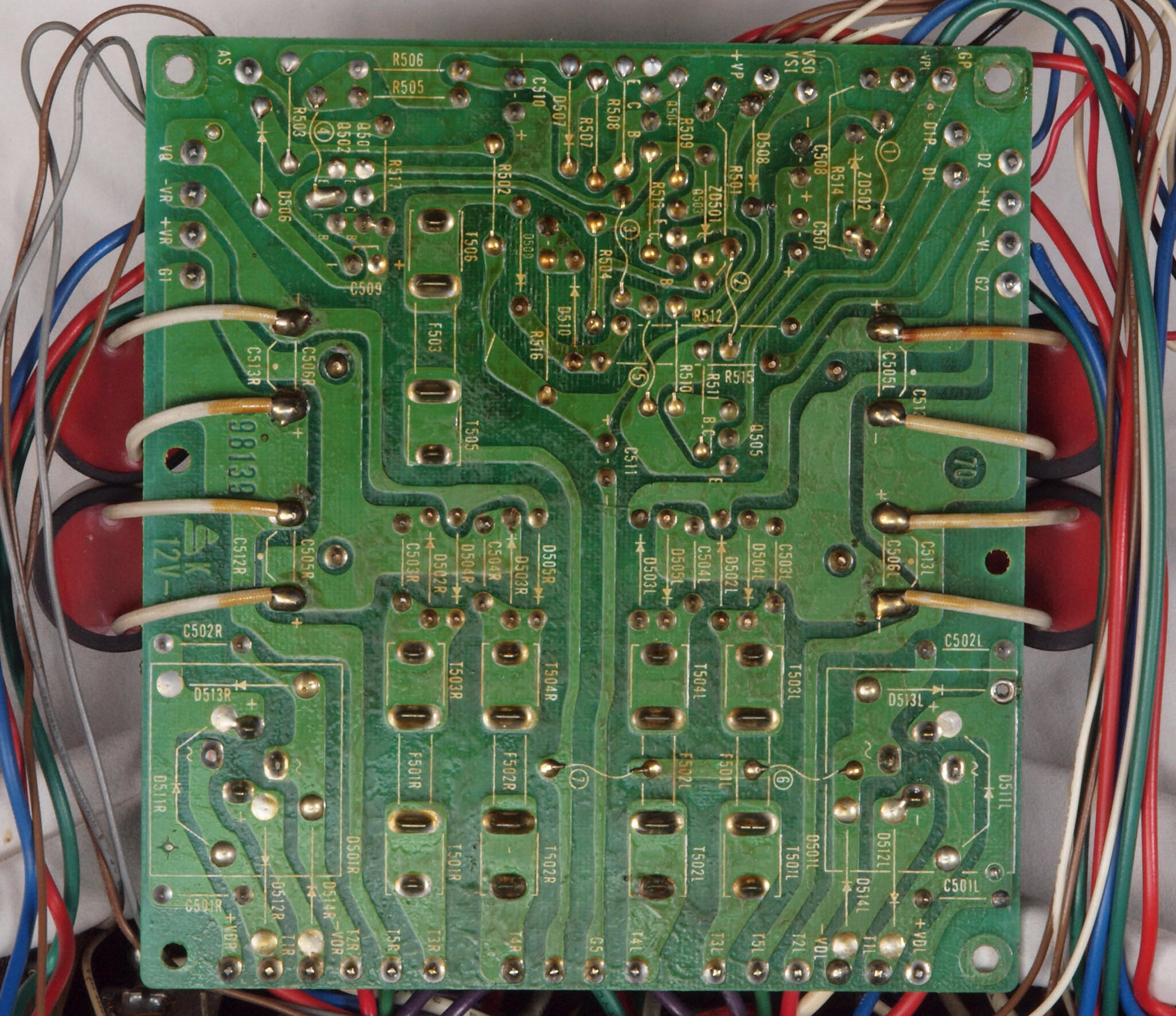 | C43. 修理中 RLモジュール裏。 TR(トランジスター)6個交換し、洗浄後軽くラッカーを吹く。 |