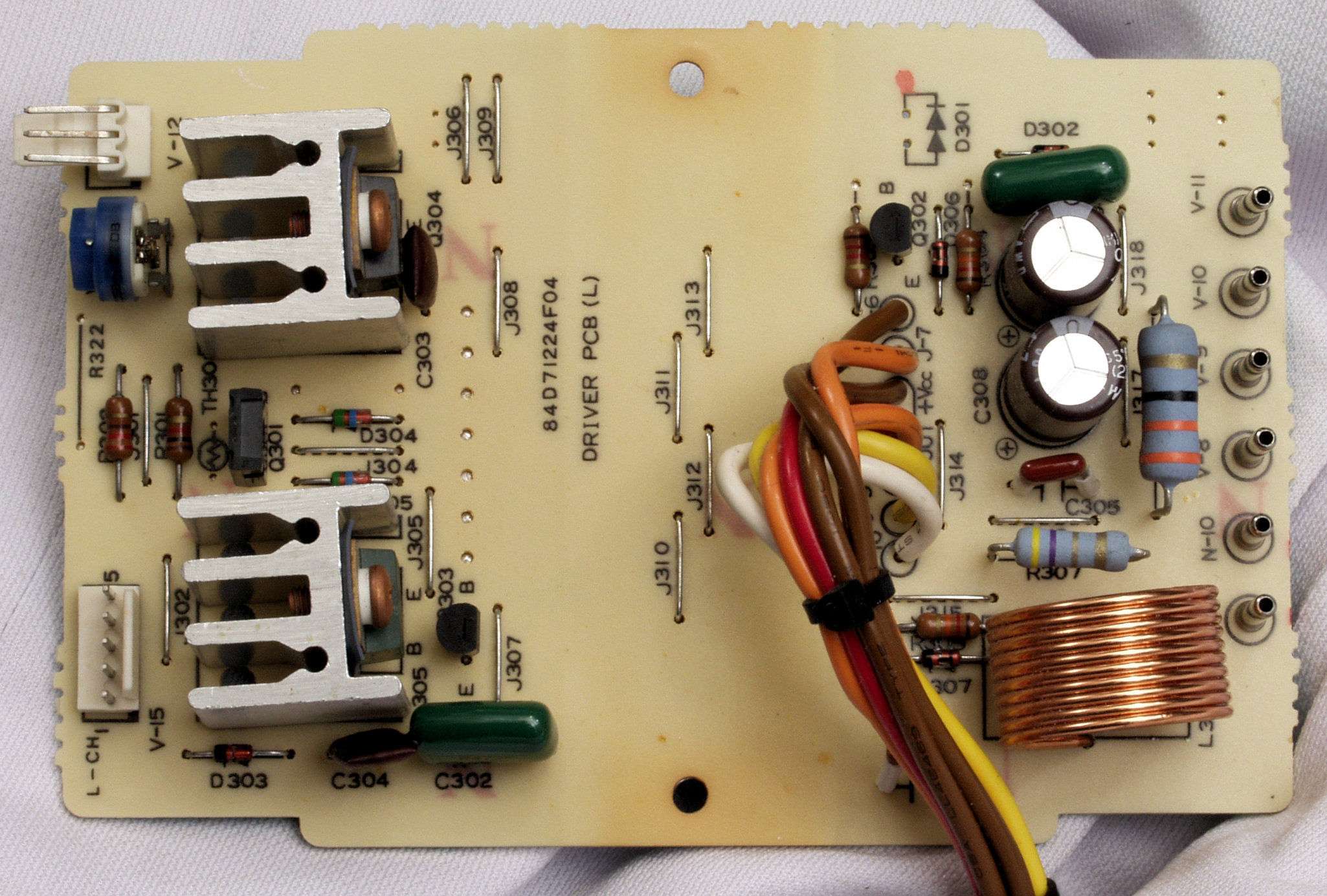 CC2. 修理前 終段TR(トランジスター)基板、L側。