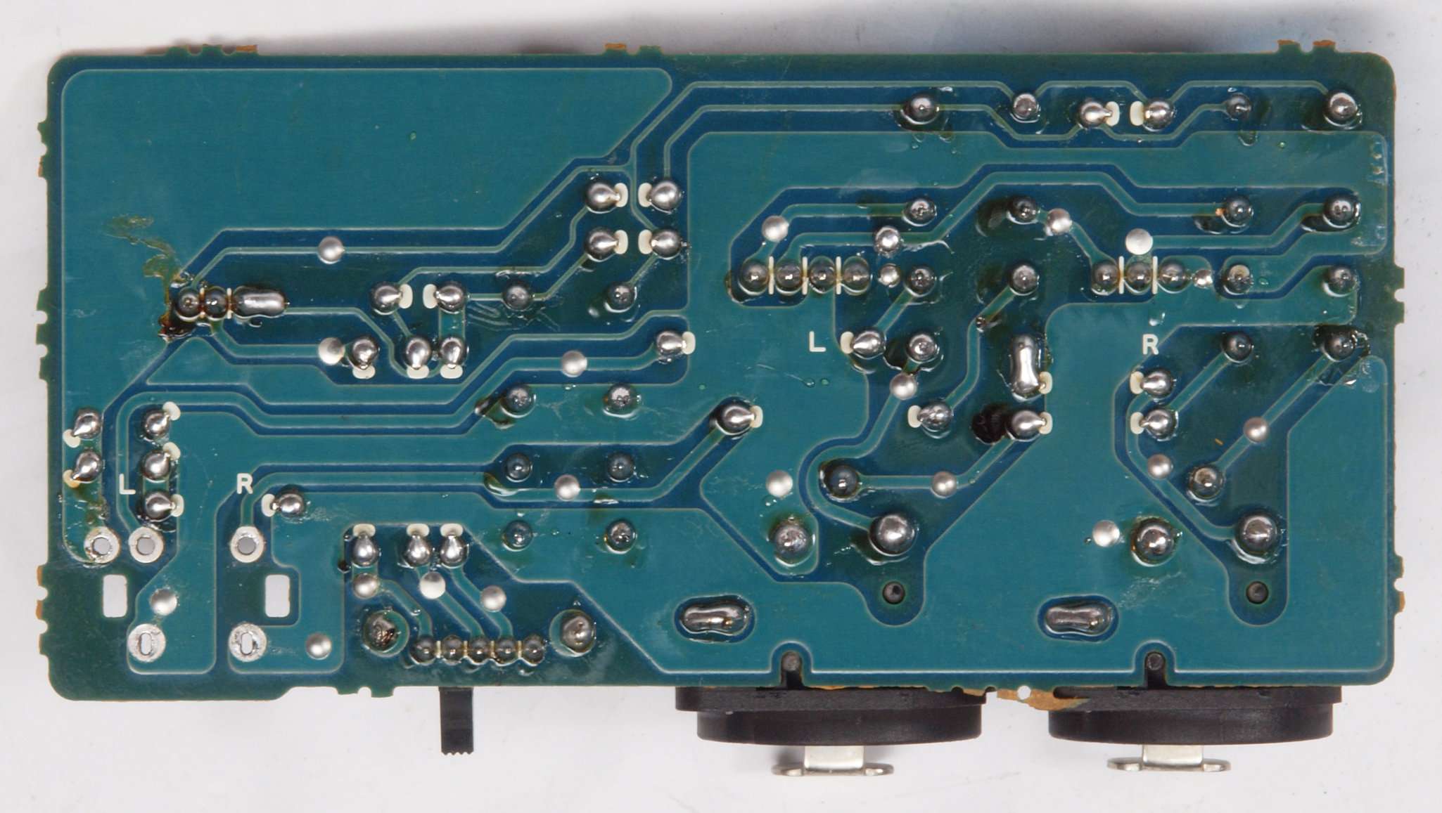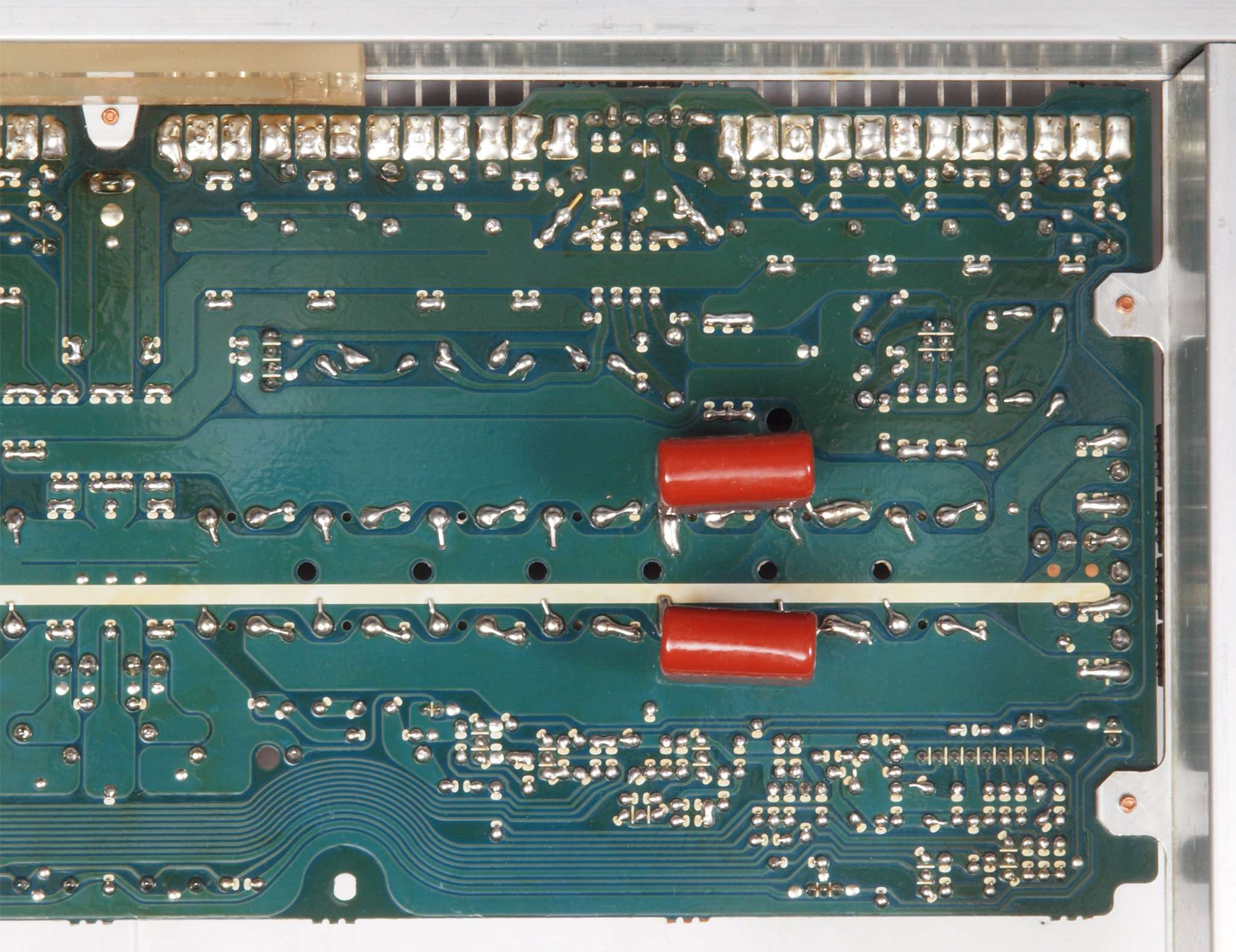 C14. (半田補正)後 右側アンプブロック基板裏。全ての半田をやり修す。フイルムコンデンサー2個追加。