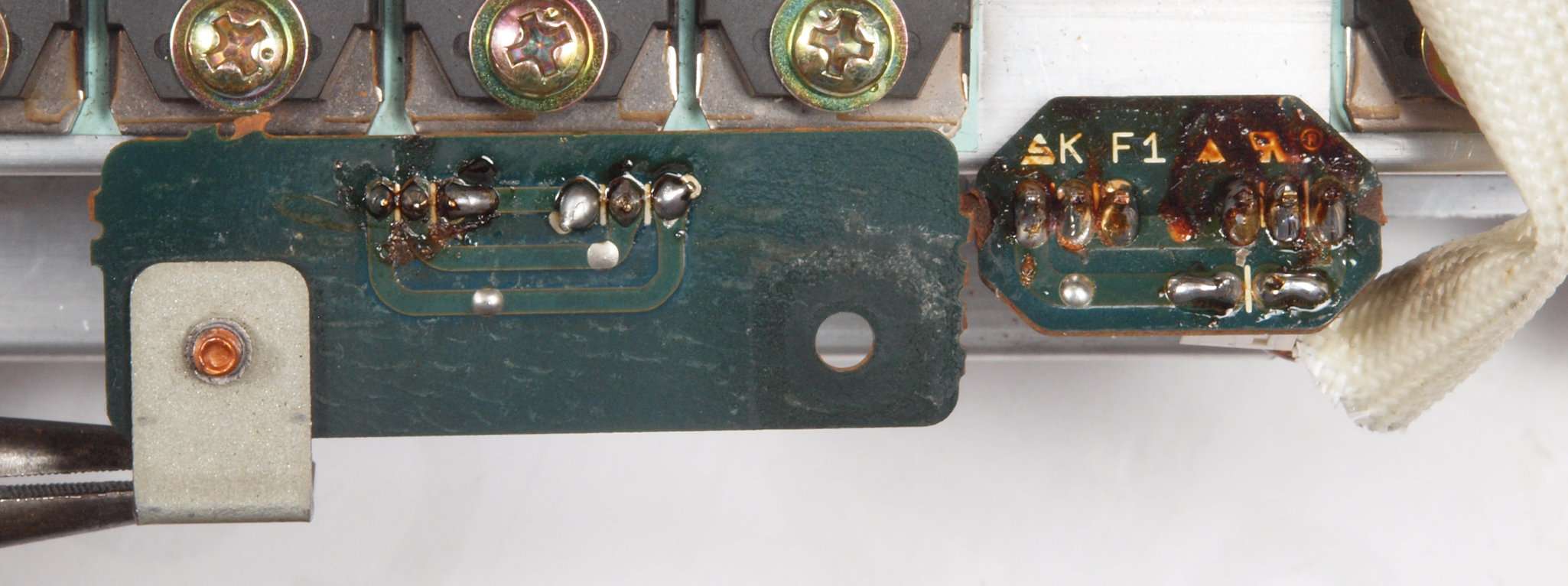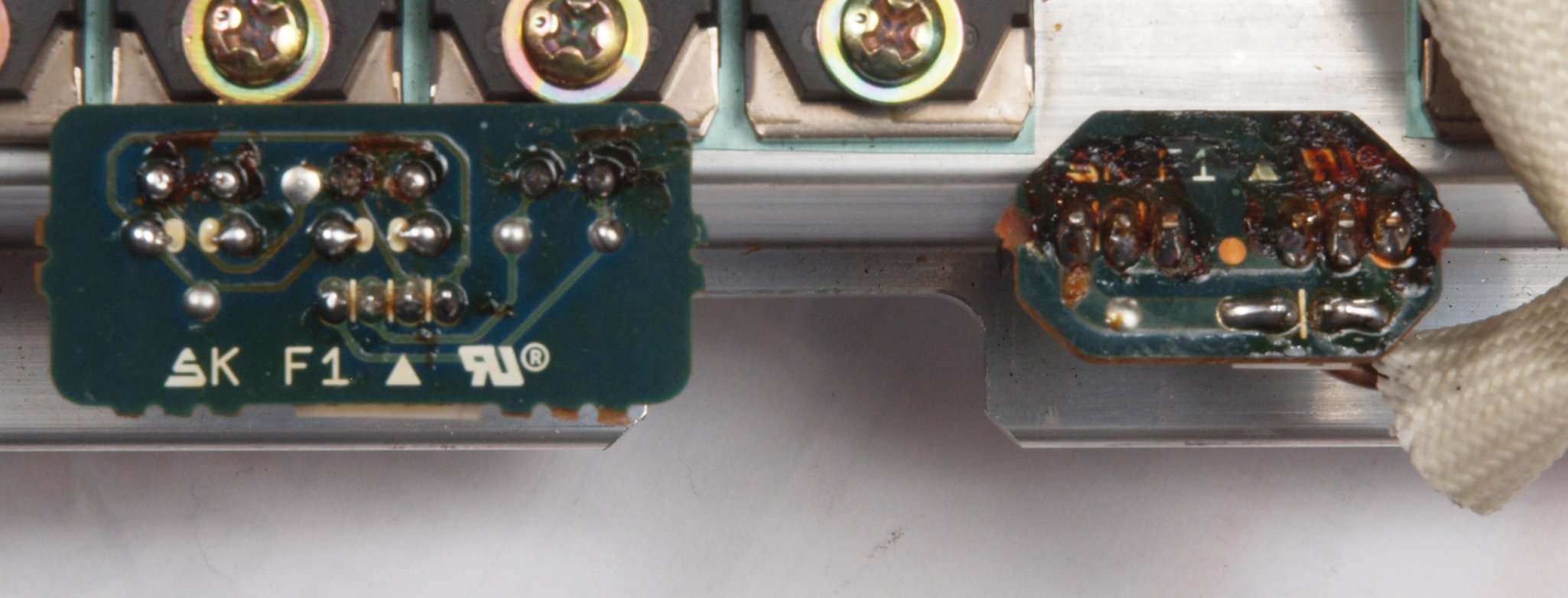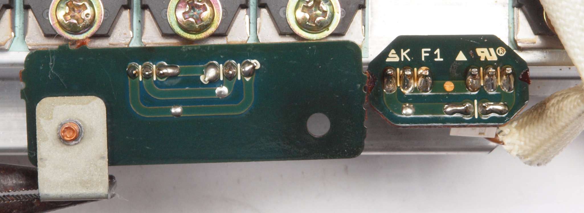 C91. 修理前 右側温度感知TR(トランジスター)基板&フアン接続基板。