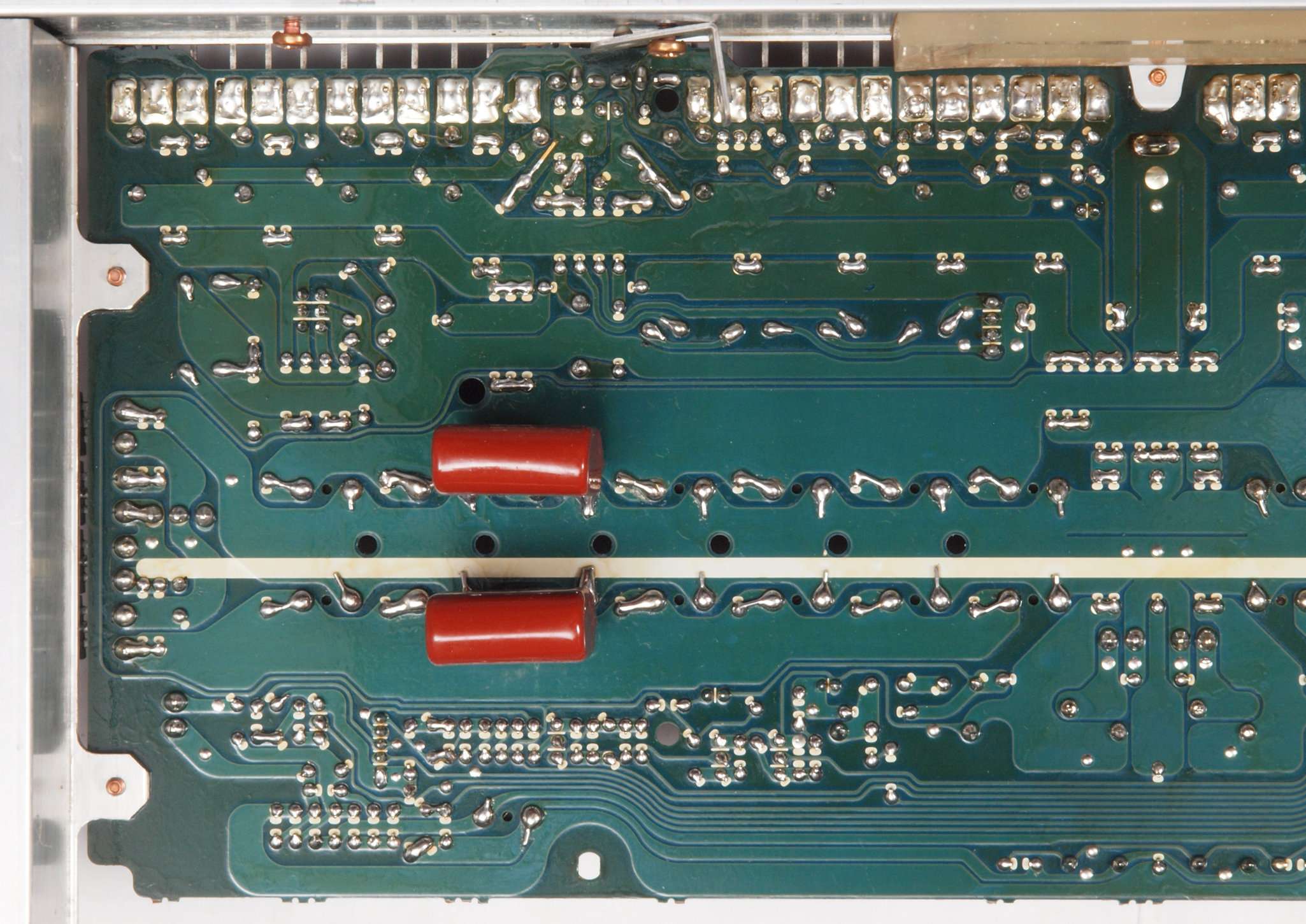 C24. (半田補正)後 左側アンプブロック基板裏。全ての半田をやり修す。フイルムコンデンサー2個追加。