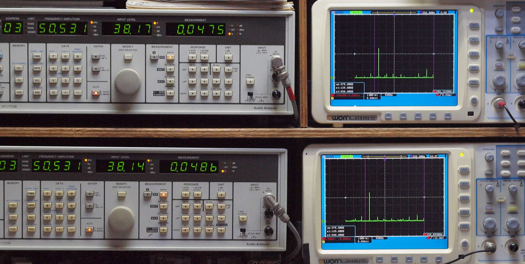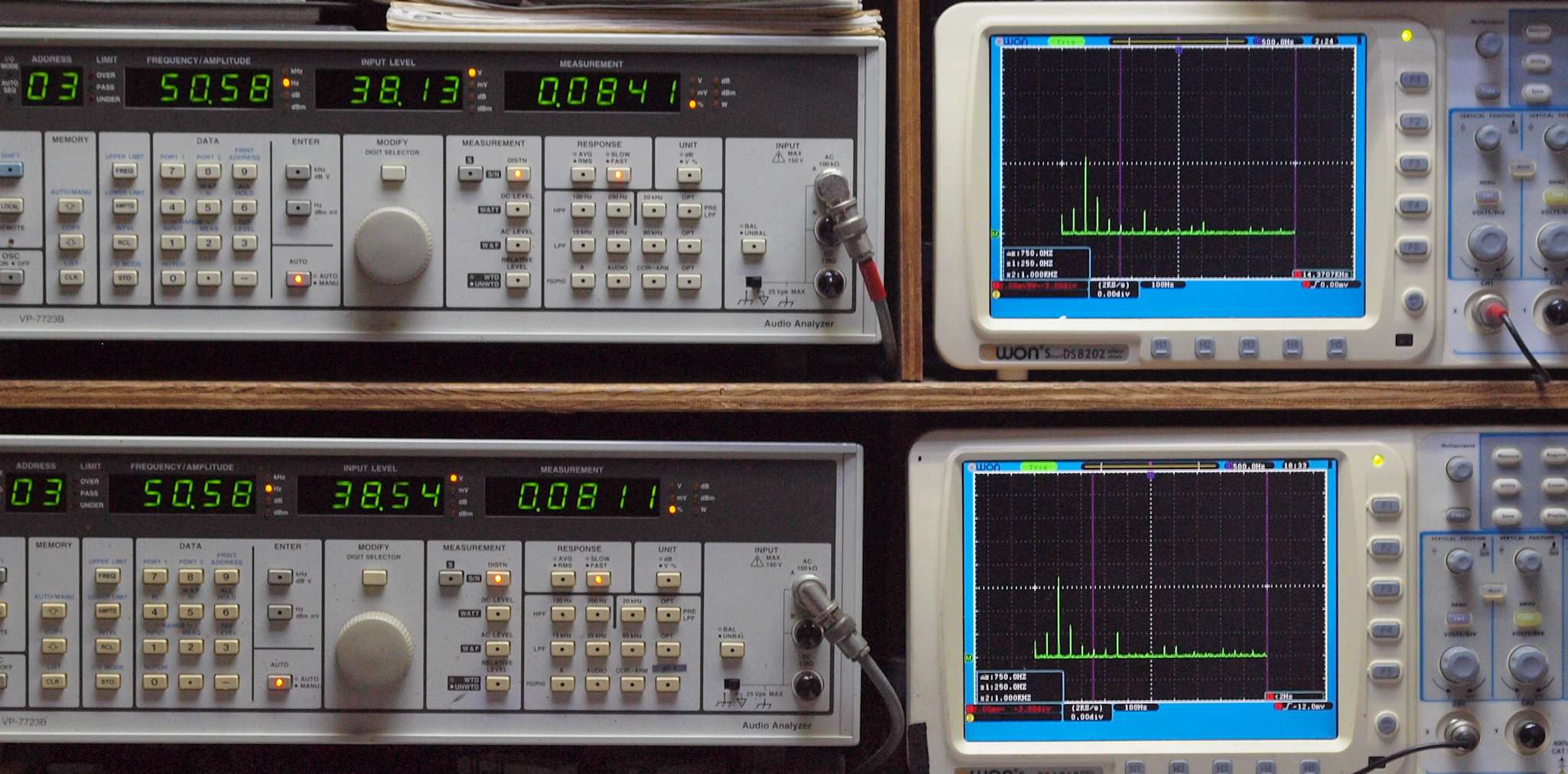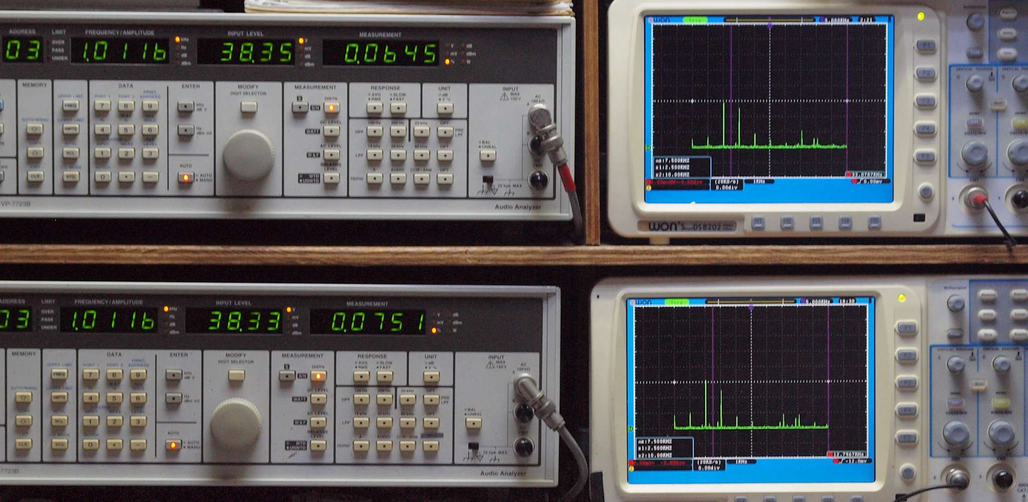 よって、ダイアル設定出力レベルより低くなります。測定機器の仕様や整備の様子はこちら、「VP−7723B」「VP−7201A」。 FFT画面の見方はこちら。