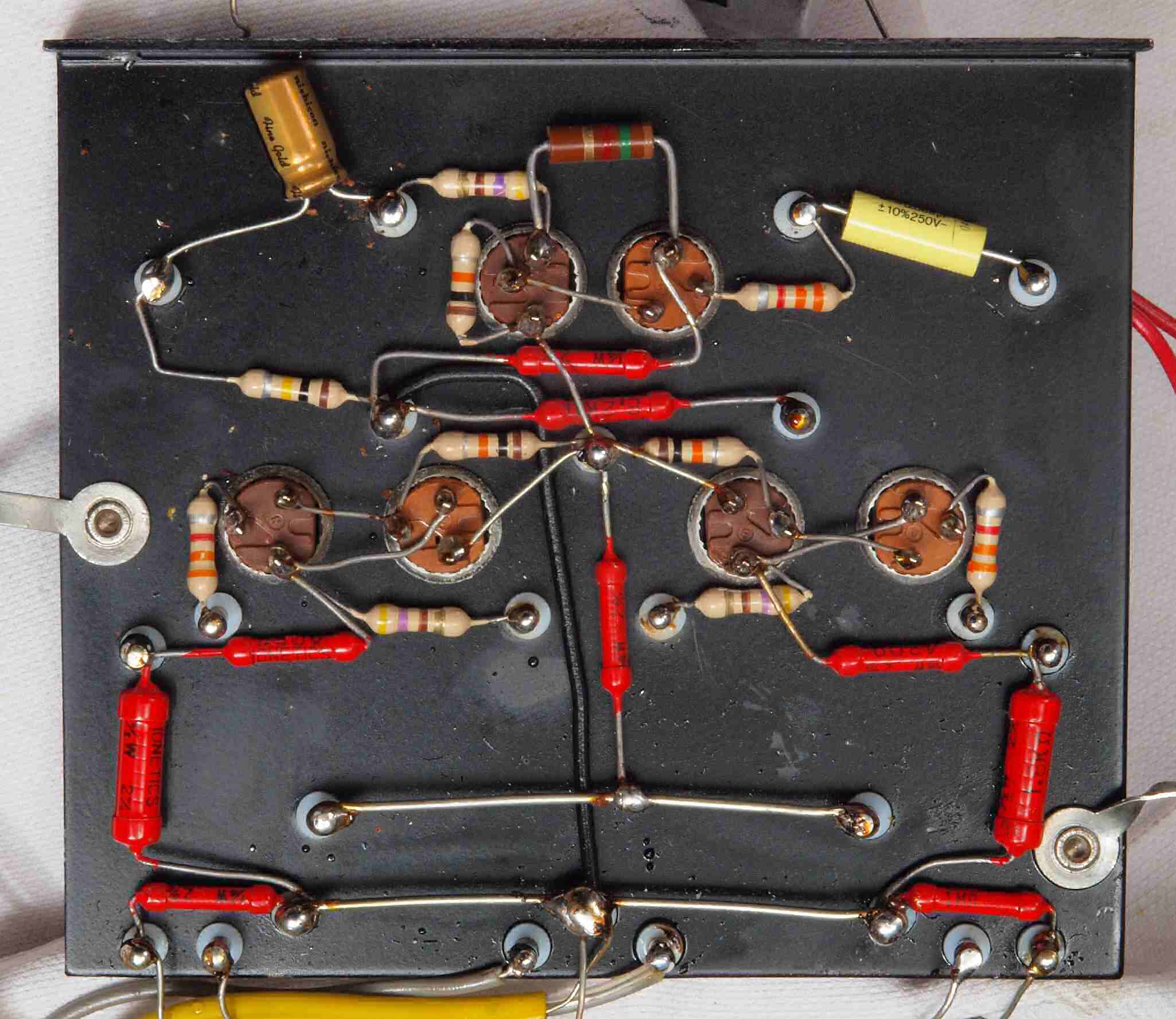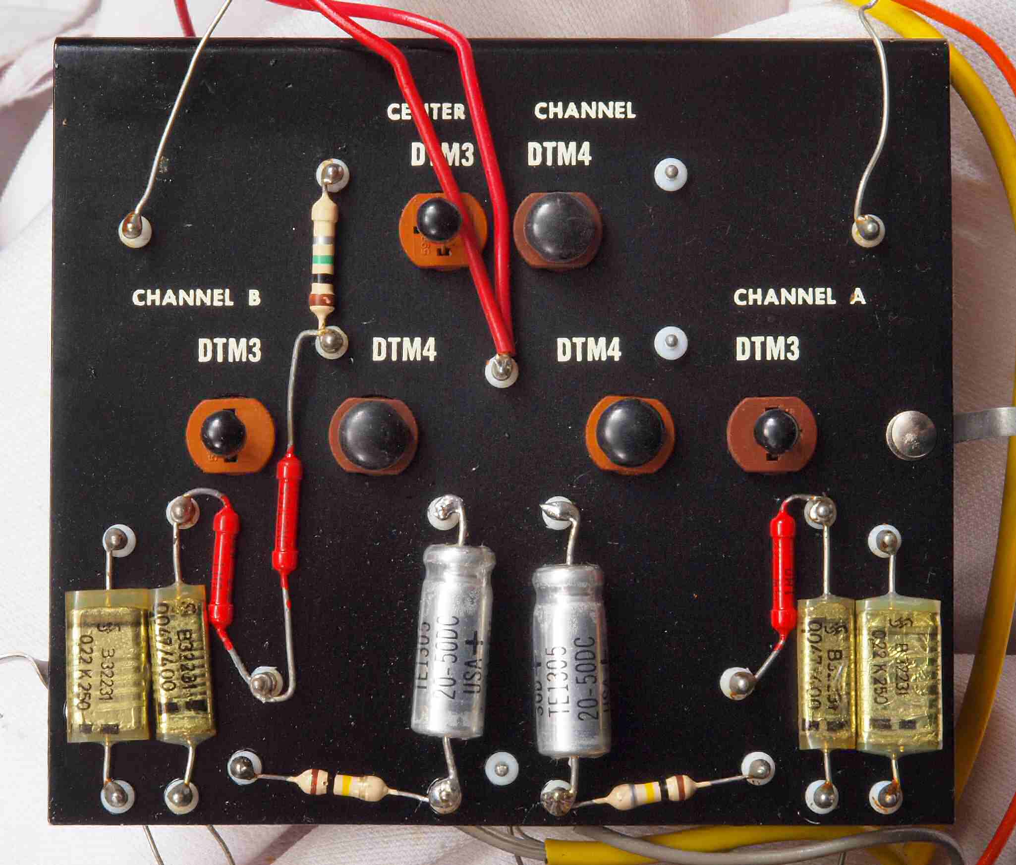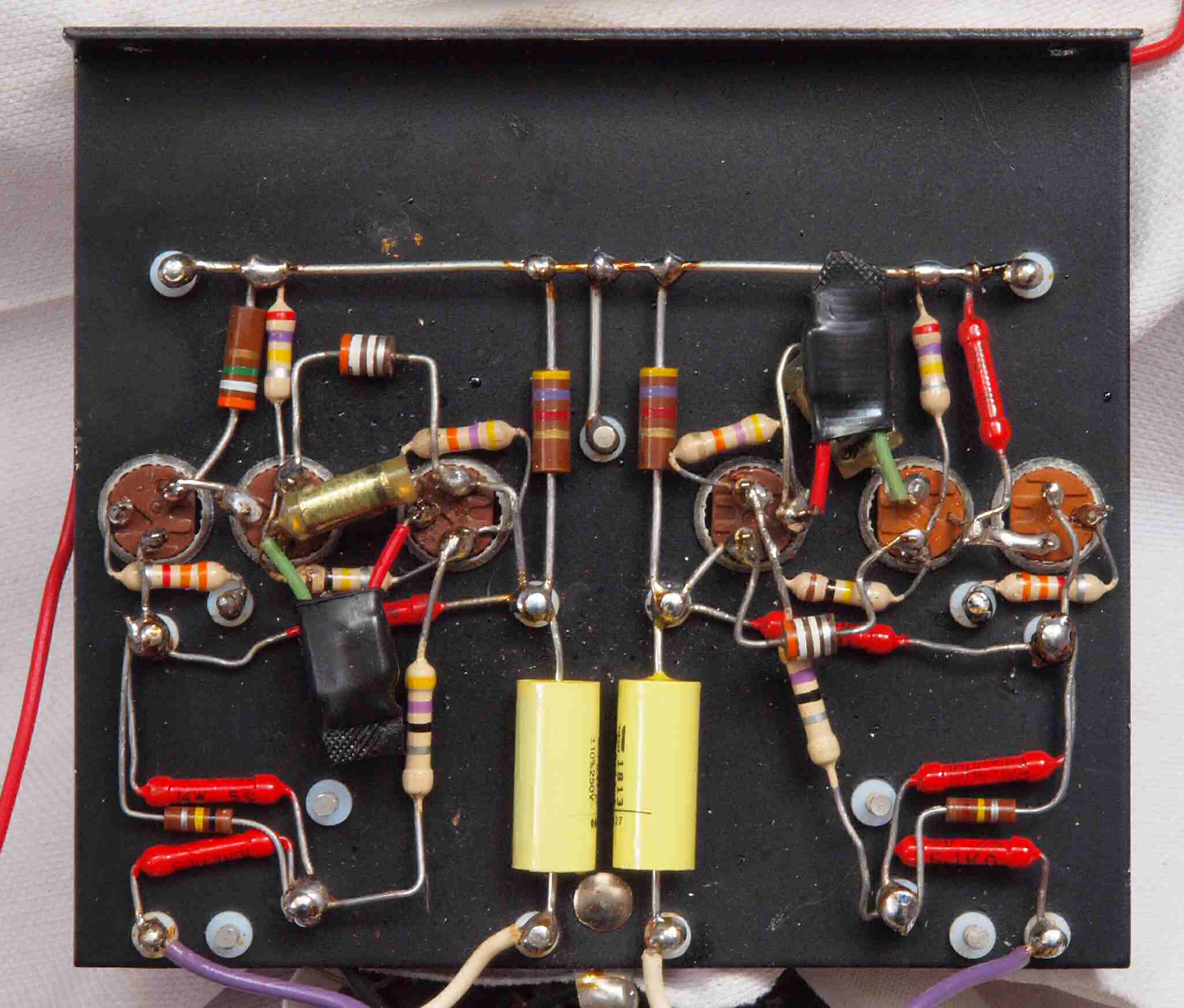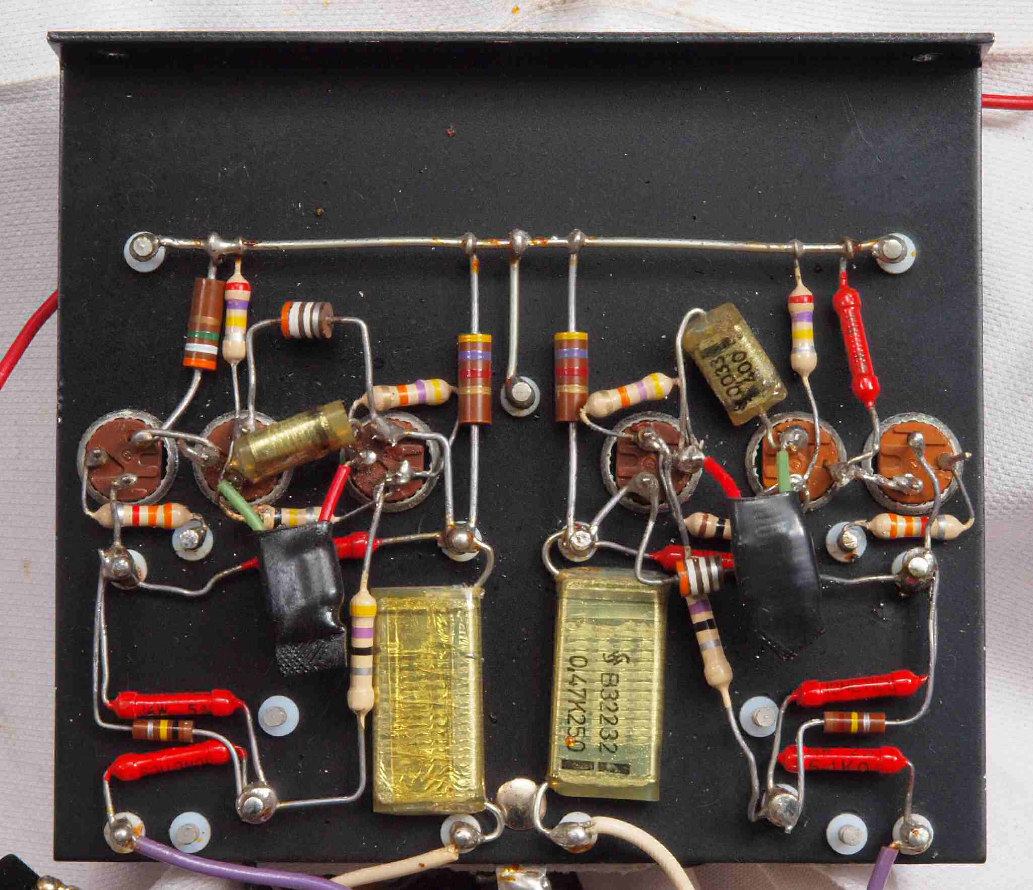 | C34. 修理後 Tone Amplifier Bord Back。 フイルムコンデンサー2個交換。 |