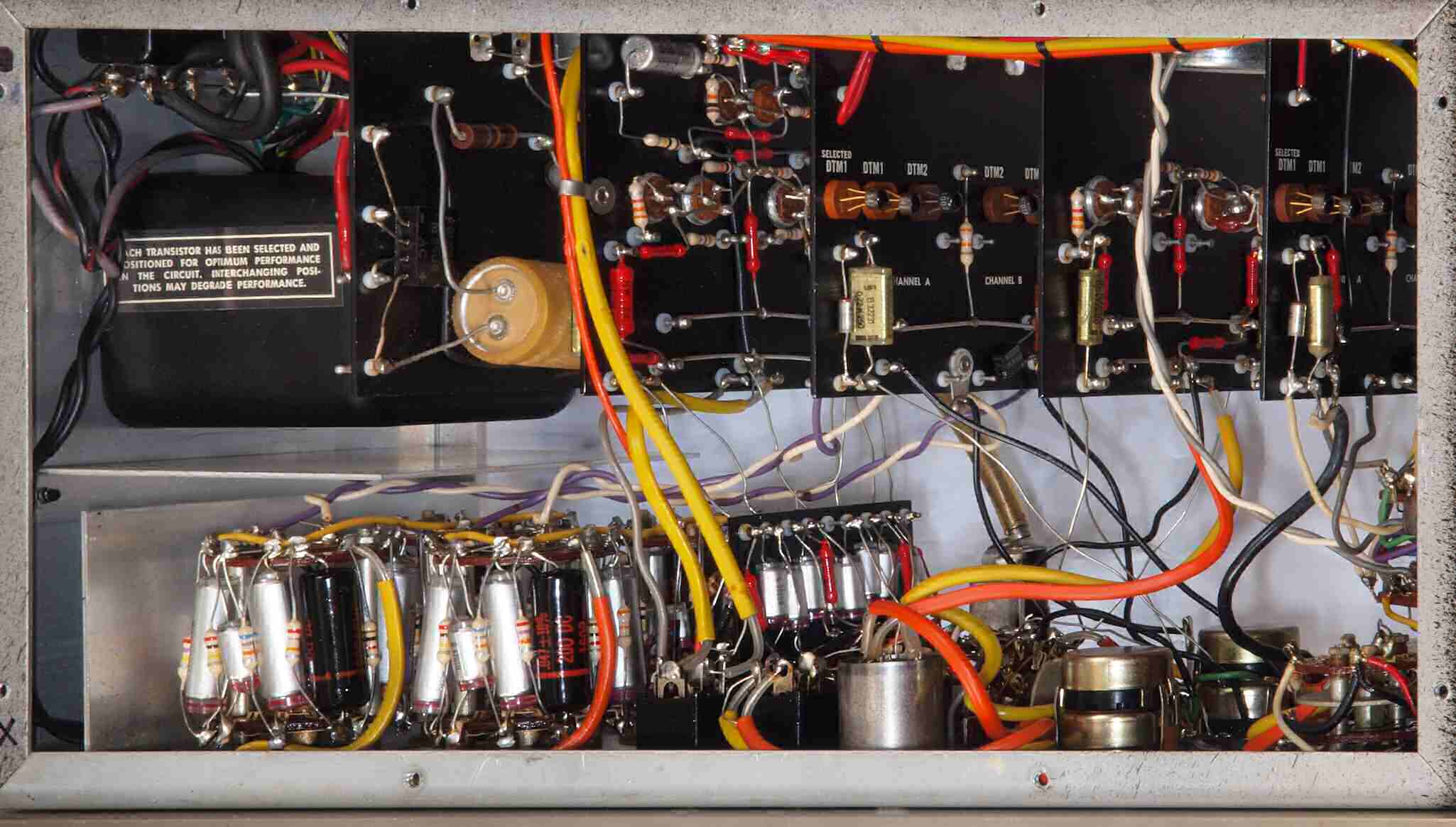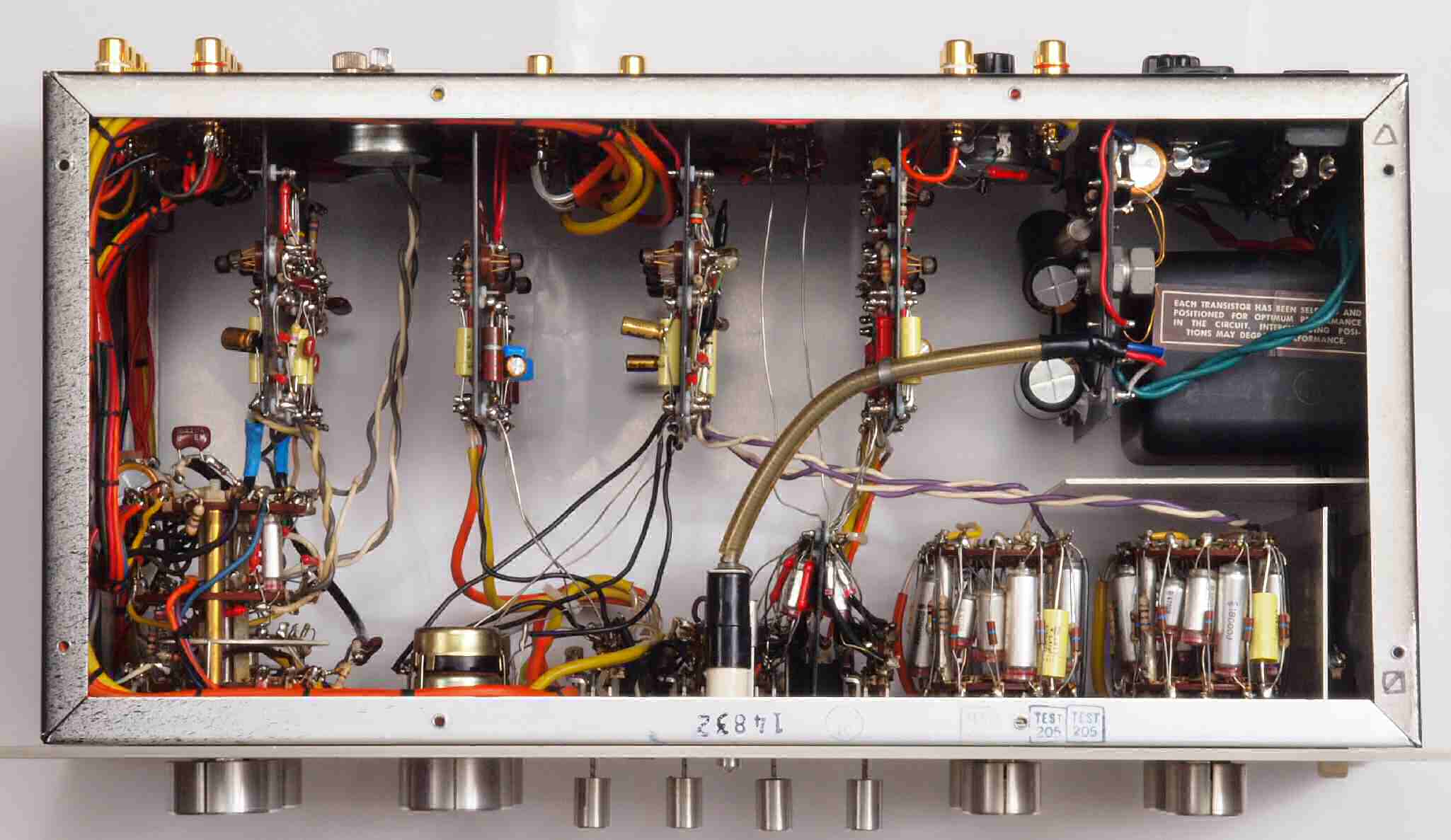 | C14. 修理後 Low_Level Amplifier Bord Back。フイルムコンデンサー2個交換、フイルムコンデンサー2個追加。 |