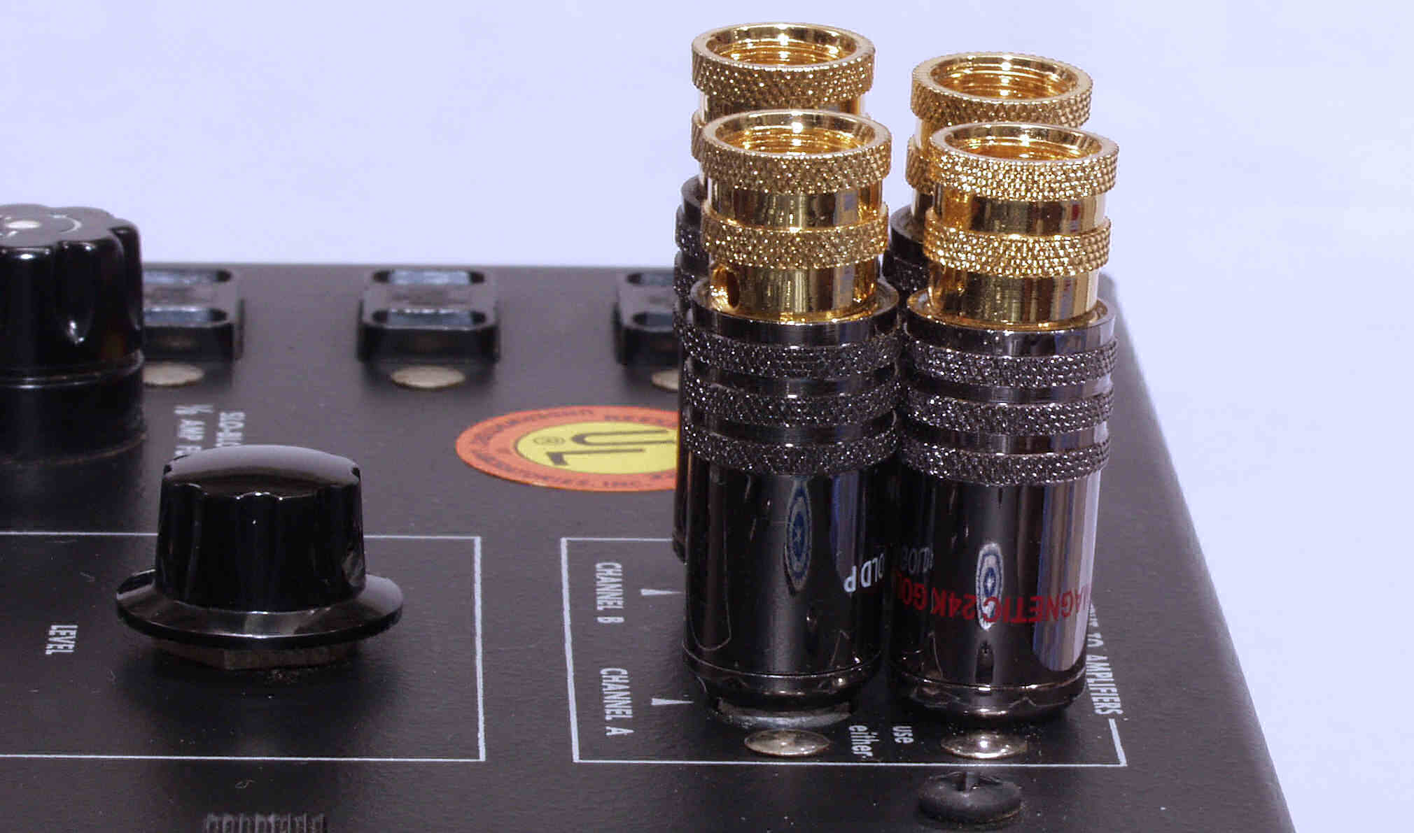 | A74. 点検中 RL出力RCA端子郡、 WBT製の小型締め付け(コレクトキャッチ)型でも、使用不可。 |