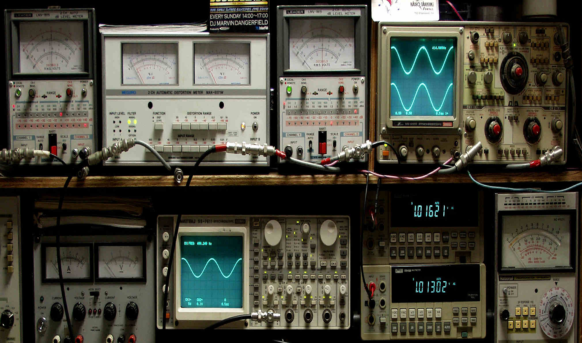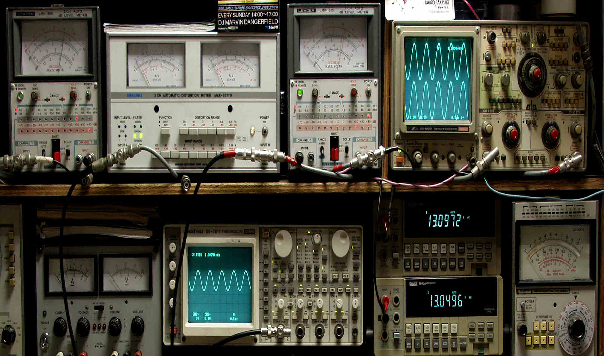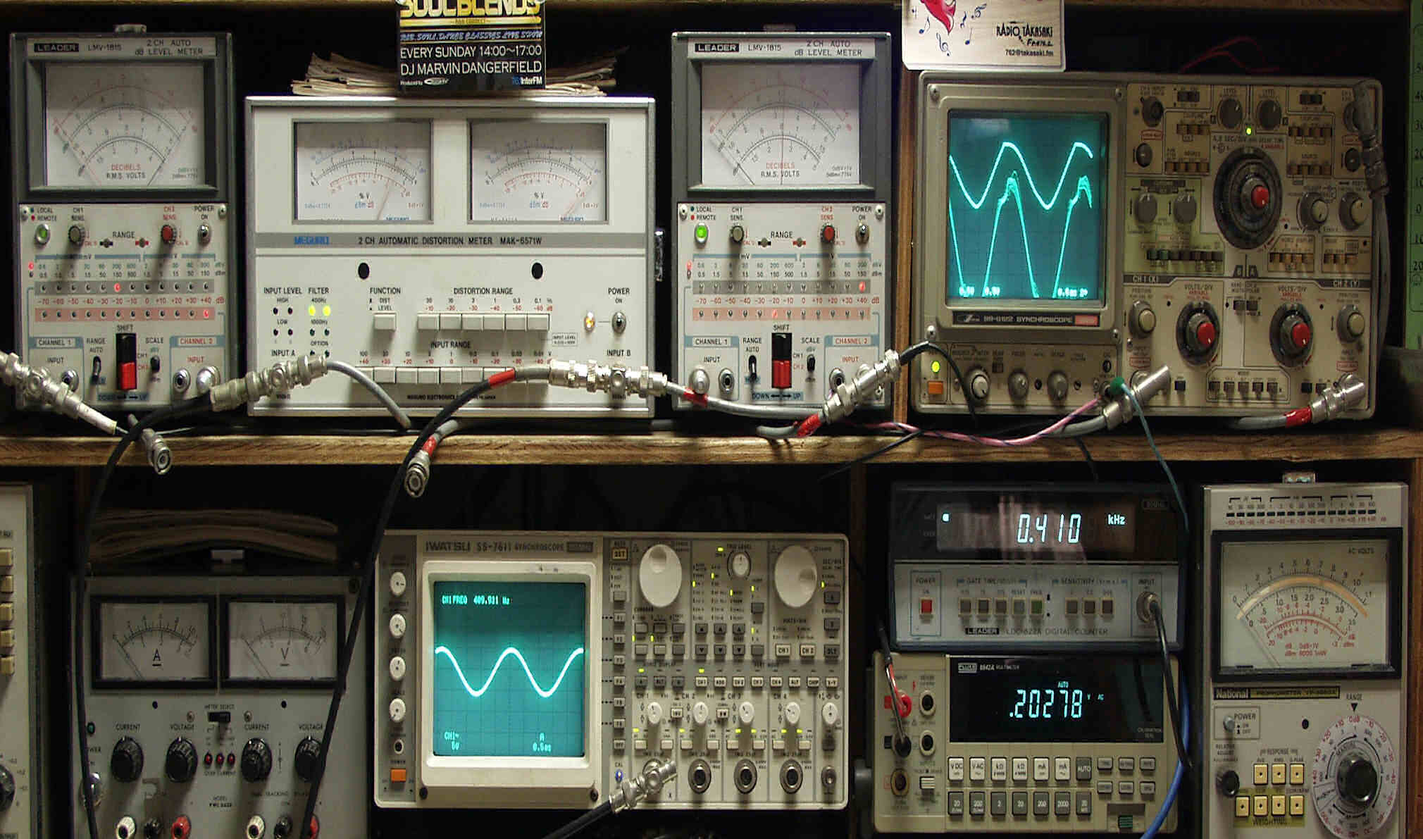 | EE. 上位測定器による 調整・測定 EE0. 下のオーディオアナライザーVP−7732Aで自動測定。 |