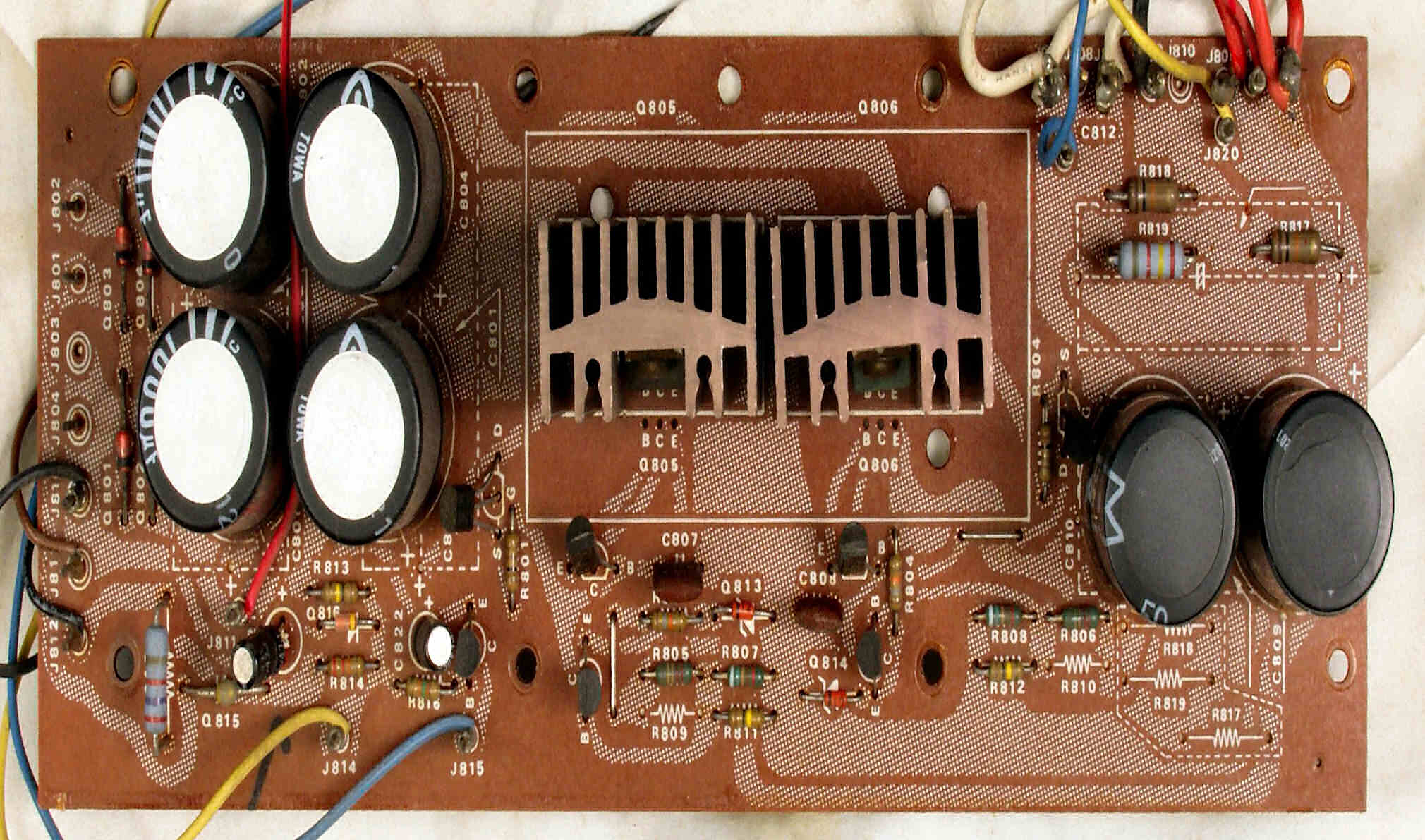 | C1B. 修理後 電源基板 TR(トランジスター)2個、電解コンデンサー8個、整流ダイオード4個交換、フイルムコンデンサー4個追加。 | ||||||||||||||||||||