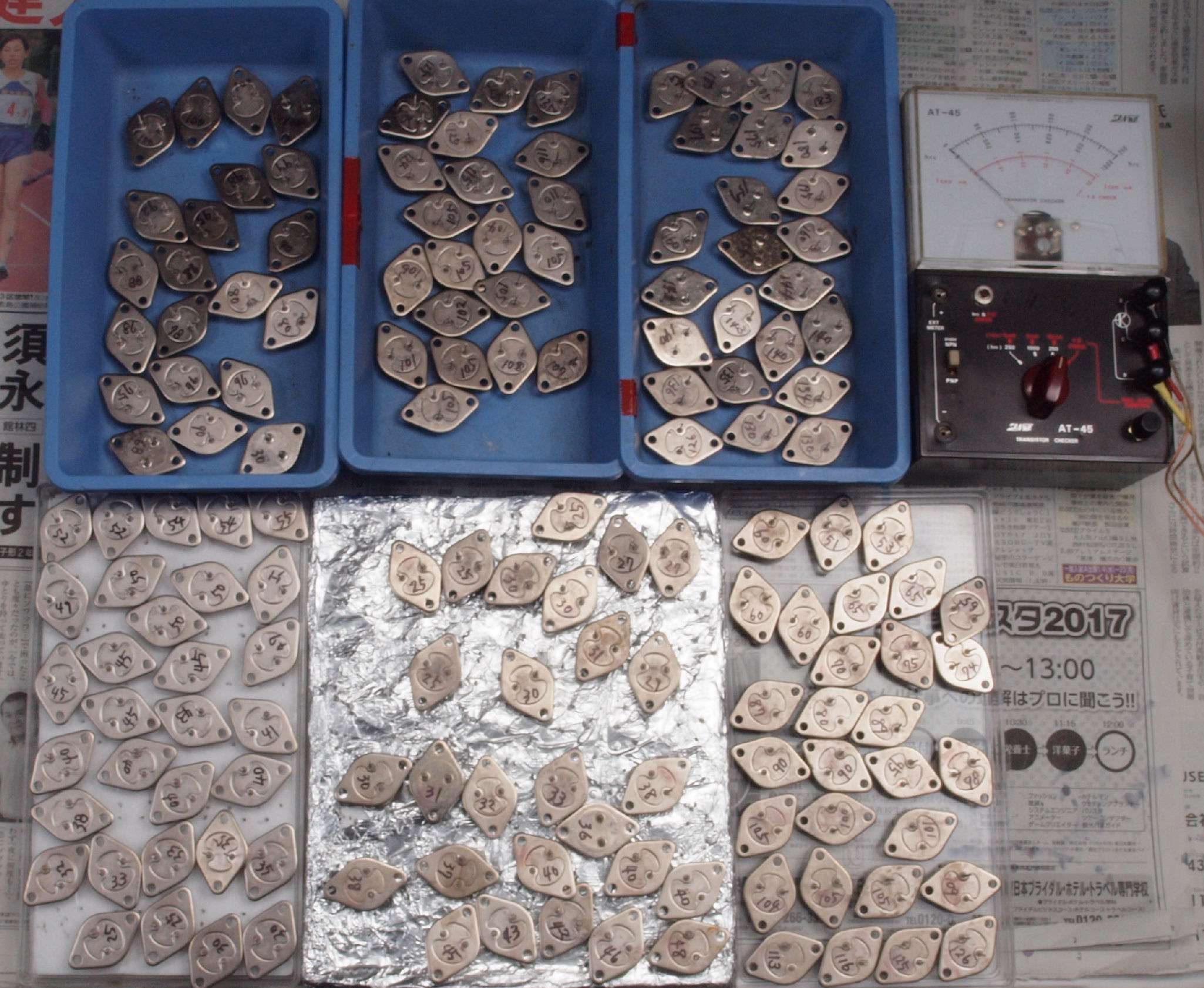 | A81. 点検中 交換する終段TR(トランジスター)の選別中。 | ||||||||||||||||||||||||