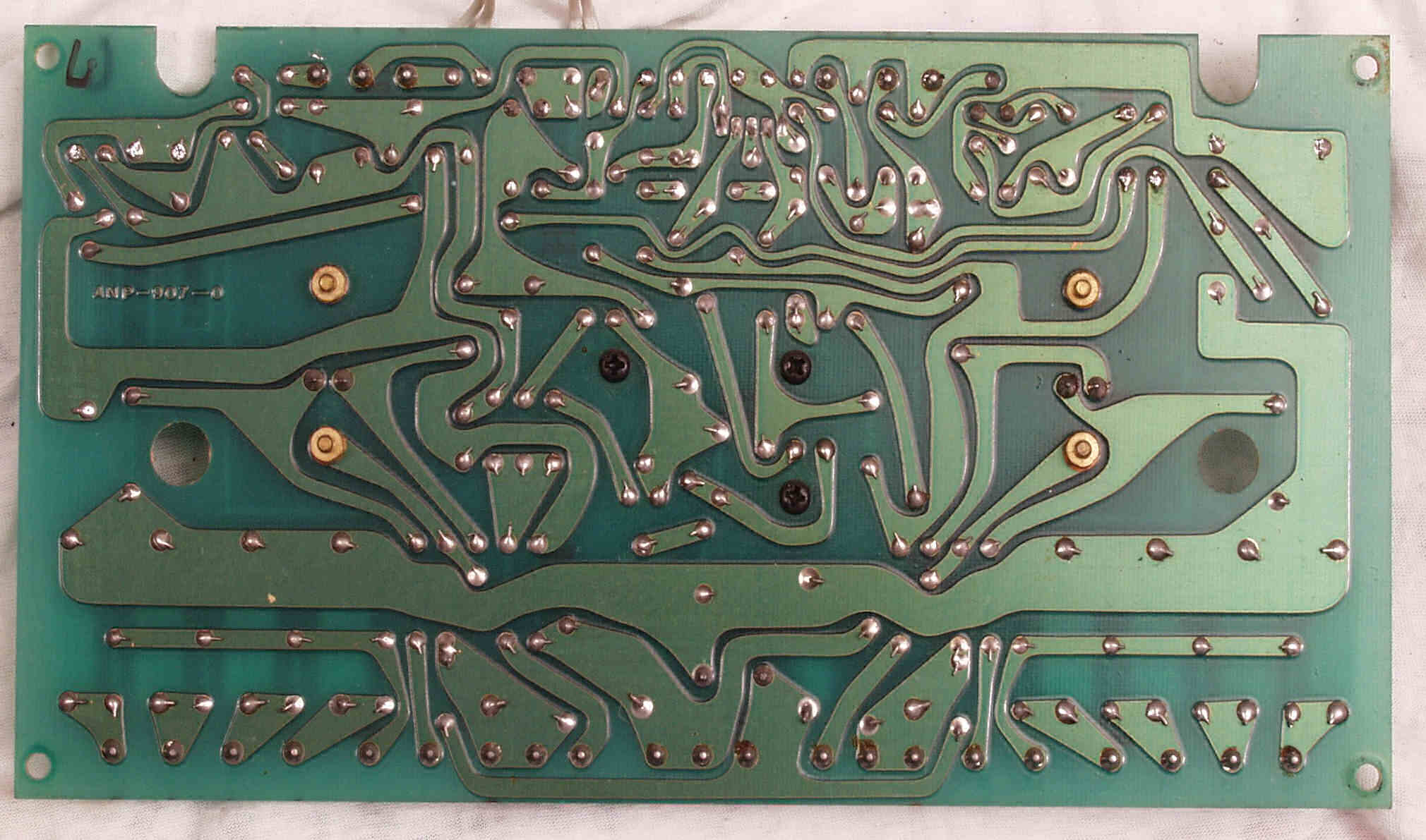 | C2D. 修理(半田補正)後 L−AMP基板裏 半田を全部やり直す、銅箔は厚いので熱容量の大きいハンダ鏝使用 | ||||||||||||||||||||||||||||||||||||||||||