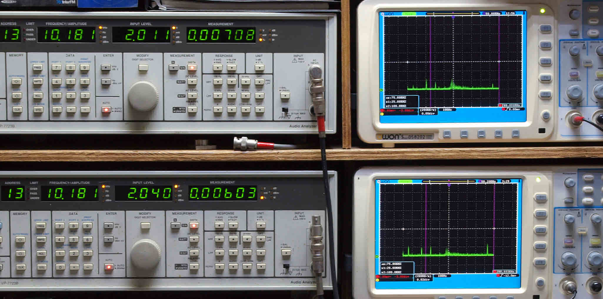 よって、ダイアル設定出力レベルより低くなります。測定機器の仕様や整備の様子はこちら、「VP−7723B」「VP−7201A」。 FFT画面の見方はこちら。