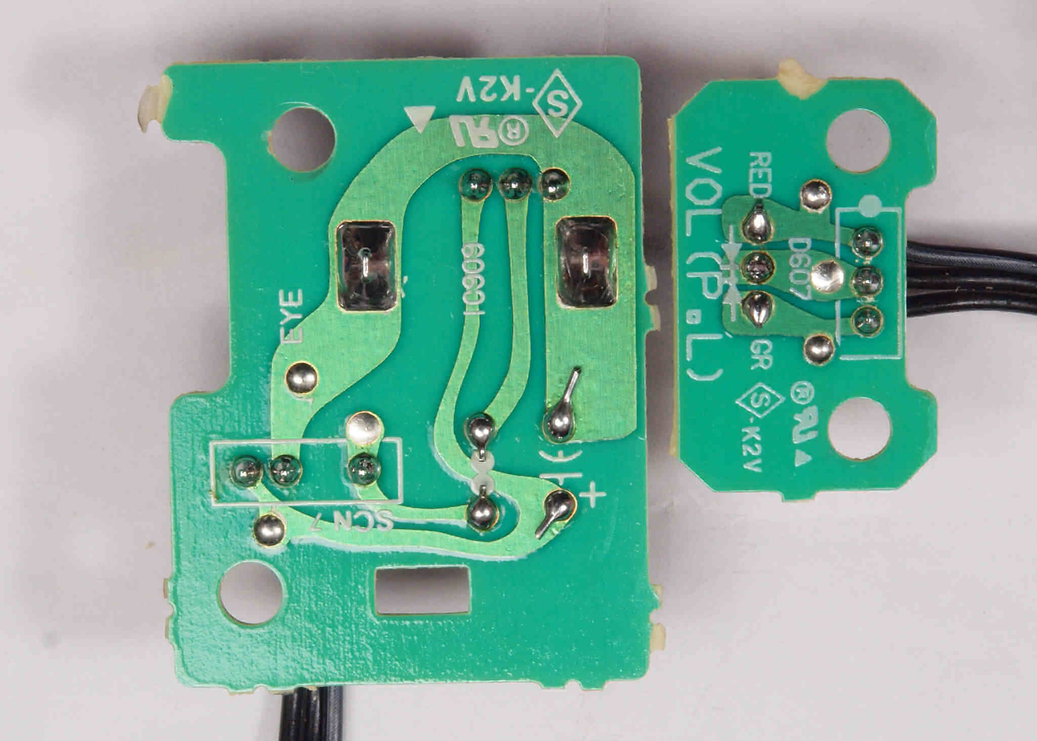 | CB2. 修理前 赤外線受光基板裏 & 電源表示LED基板裏。 | ||||||||||||||||||||||||||||||||||||