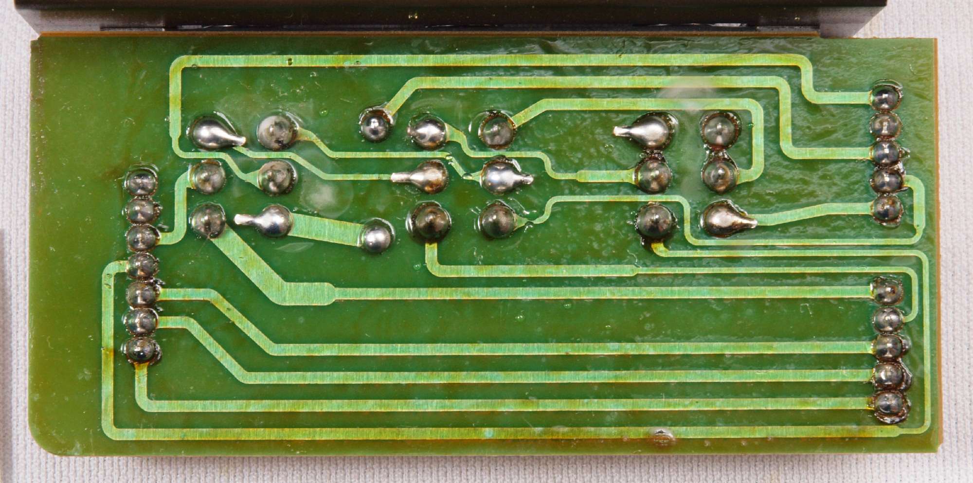| CE4. 修理(半田補正)後 トレー操作基板裏。 全ての半田をやり直す。 | ||||||||||||||||||||||||||||||||||||||||||||||||