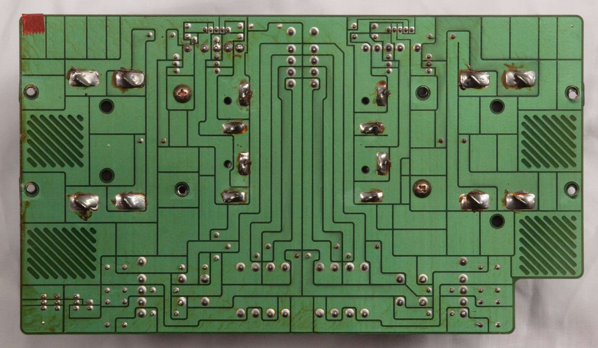 | C24. 修理(半田補正)後 終段・プロテクト基板裏。 全ての半田をやり直す。 | ||||||||||||||||||||||||||||||||||||||||||||||||