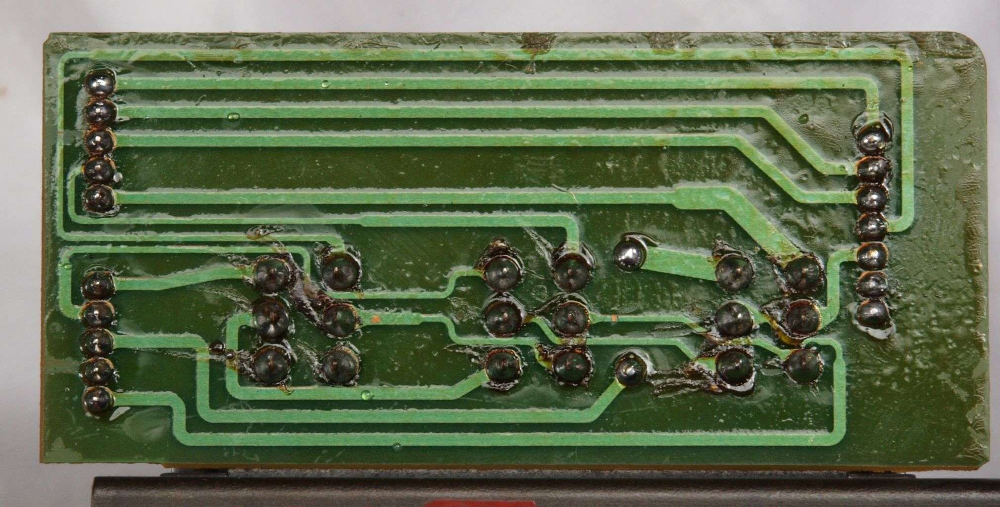 | CE4. 修理(半田補正)後 トレー操作基板裏。 全ての半田をやり直す。 | ||||||||||||||||||||||||||||||||||||||||||||||||