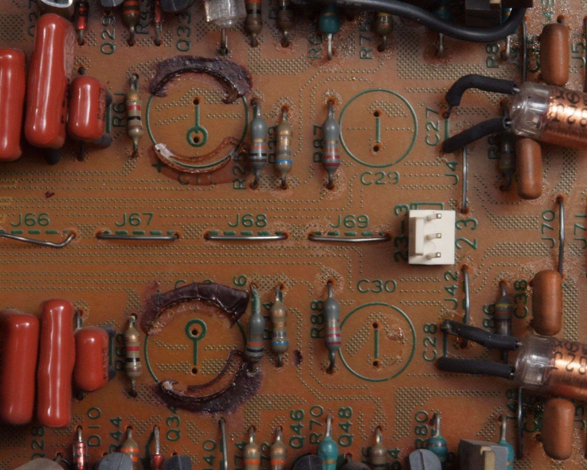 A27. 点検中 上下蓋、AUX−RCA端子版を取り、下から見る