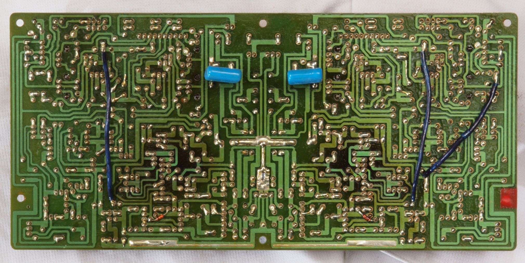 | C514. 修理中 EQ−AMP(equalize-amplifier)基板、 トルエン溶媒の接着剤を取り去り、コートを塗布後。 | ||||||||||||||||||||||||||||||||||||||||||||||||