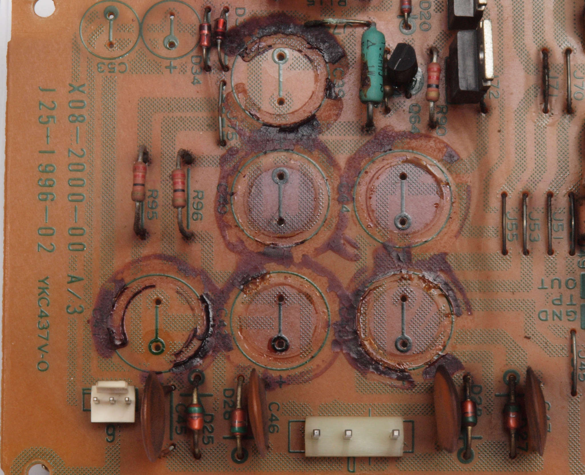 | P22. 修理中 電源部基板。 電解コンデンサー固定するトルエン溶媒の接着剤。 | ||||||||||||||||||||||||||||||||||||||||||||||||