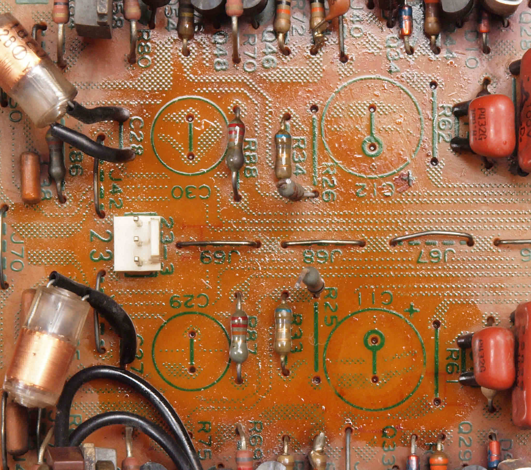 | C51. 修理前 EQ−AMP(equalize-amplifier)基板。 リレーが1個交換されている。 | ||||||||||||||||||||||||||||||||||||||||||||||||