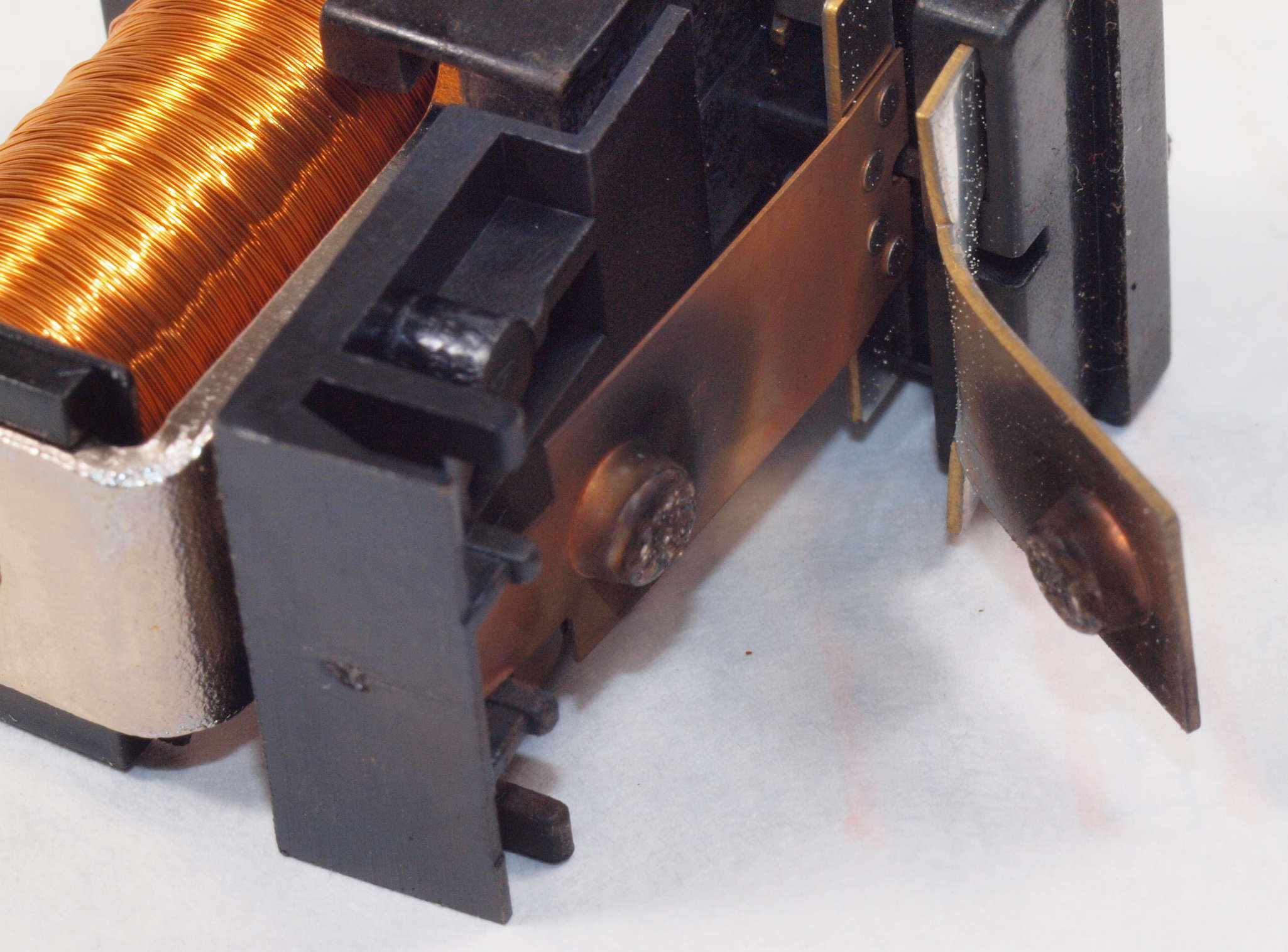 | CG2. 交換部品。 電源投入リレーの焼けた接点。 接点を磨いても全体が焼けて弱く成っているので交換が良い。 | ||||||||||||||||||||||||||||||||||||||||||||||||