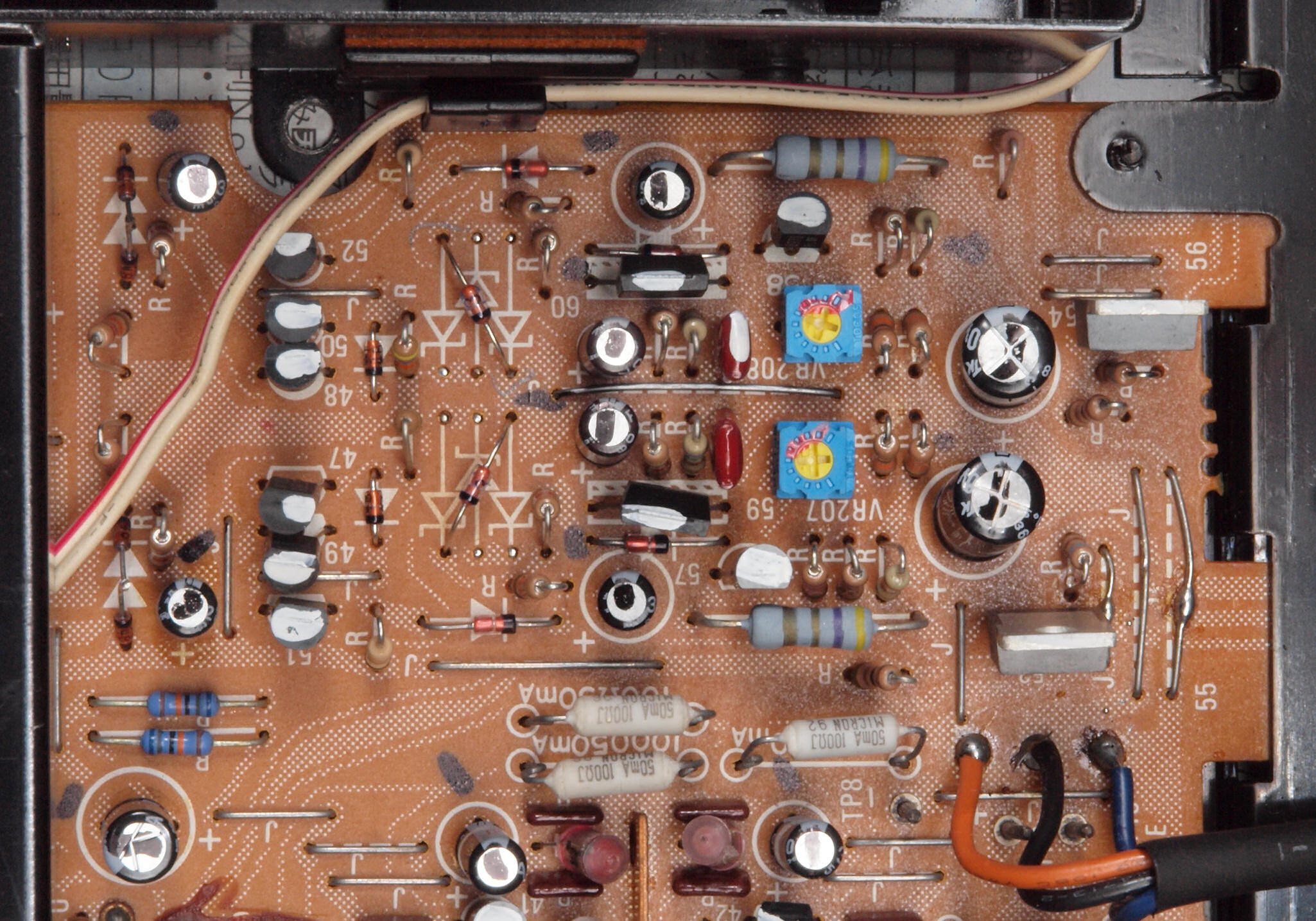 | C48. 修理前 EQ−AMP基板電解コンデンサー固定するトルエン溶媒の接着剤2。ジャンパー線を腐食する。 | ||||||||||||||||||||||||||||||||||||||||||||||