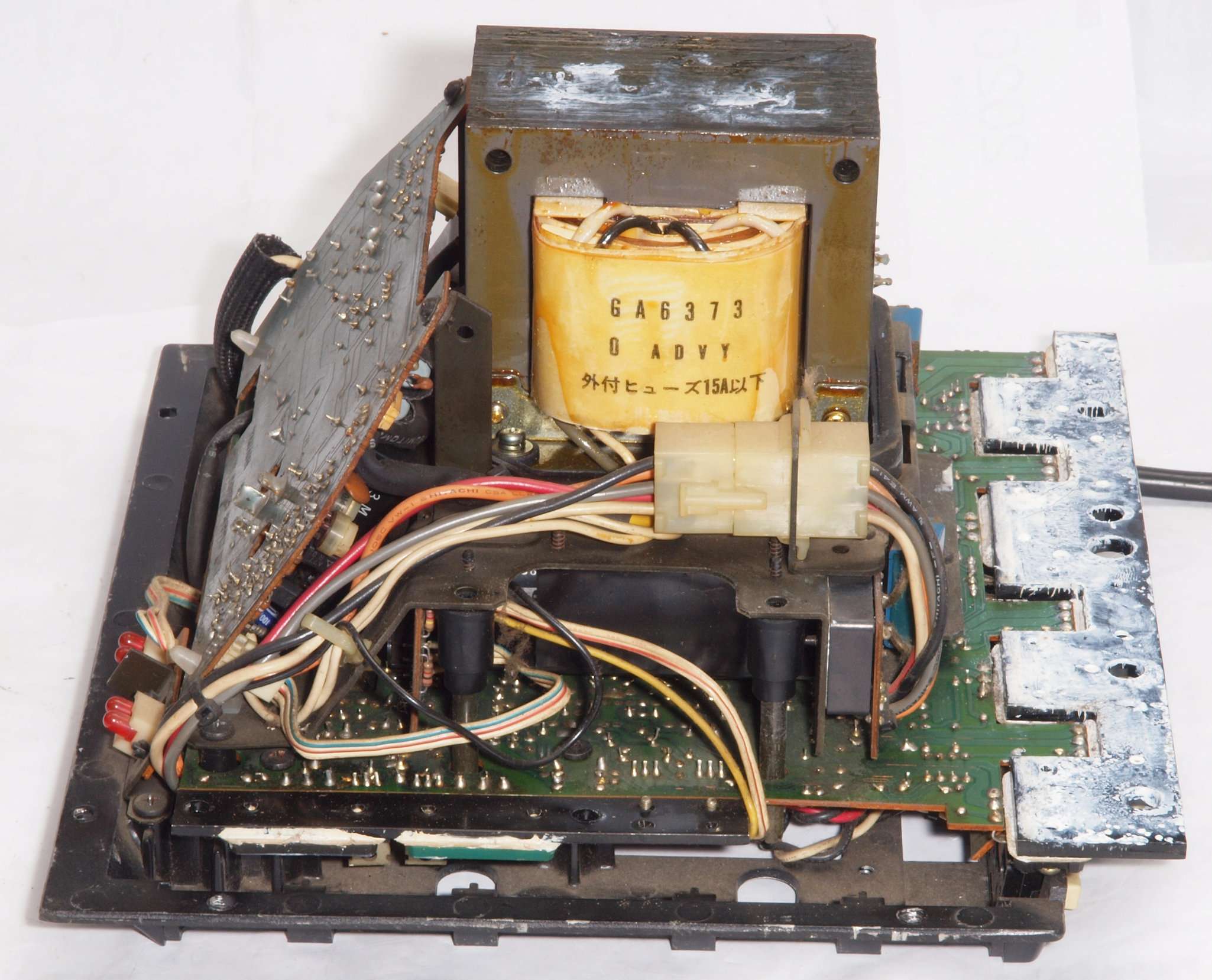 | C. 修理状況。 画像をクリックすると、大きく(横幅2050ドット)表示されます。 C1. 修理中 基板等を取り外したシャシー。 |