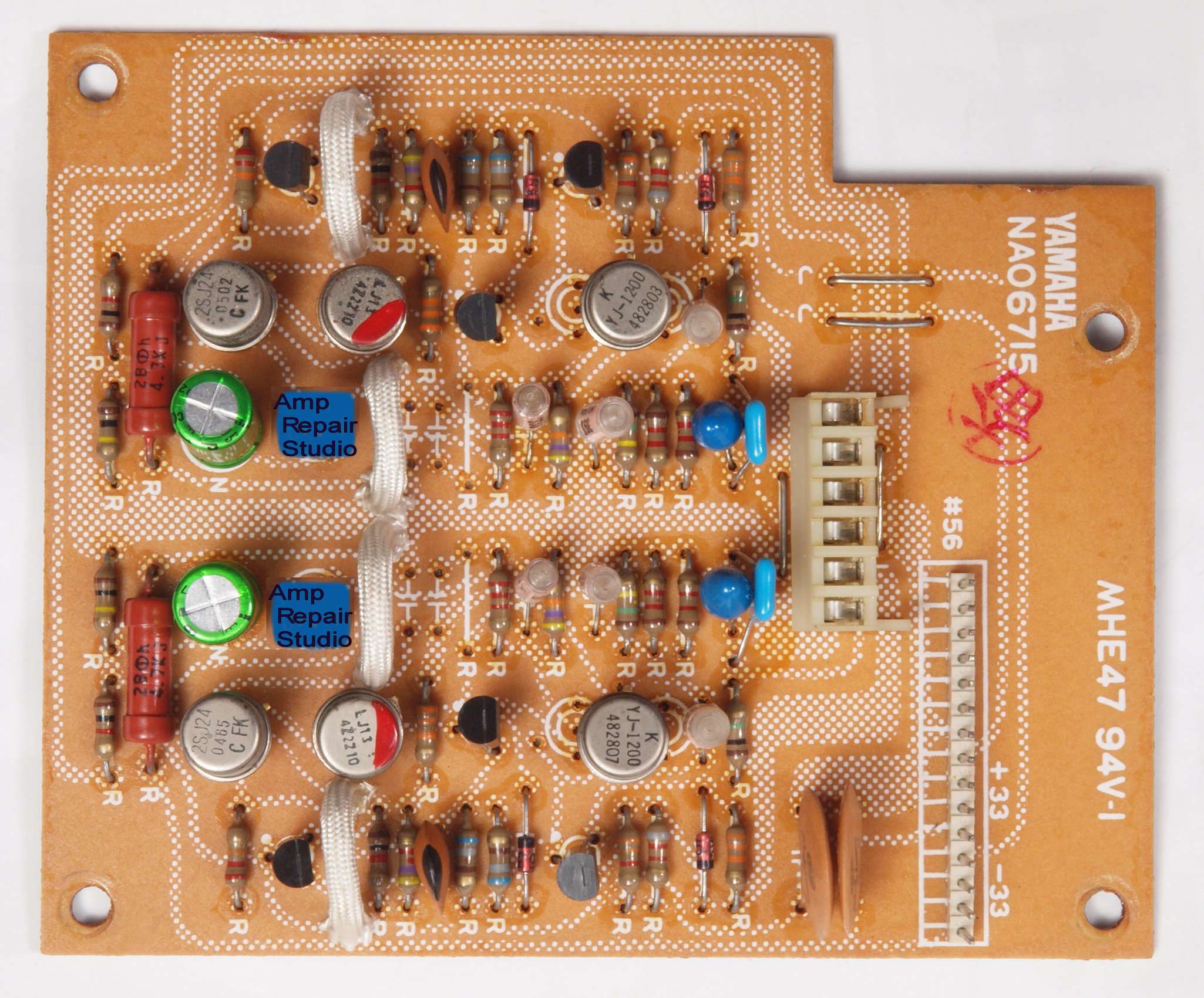 C22.修理後 EqualizerAMP基板  足黒TR(トランジスター)18個、電解コンデンサ−8個、フイルムコンデンサー2個、半固定VR2個交換