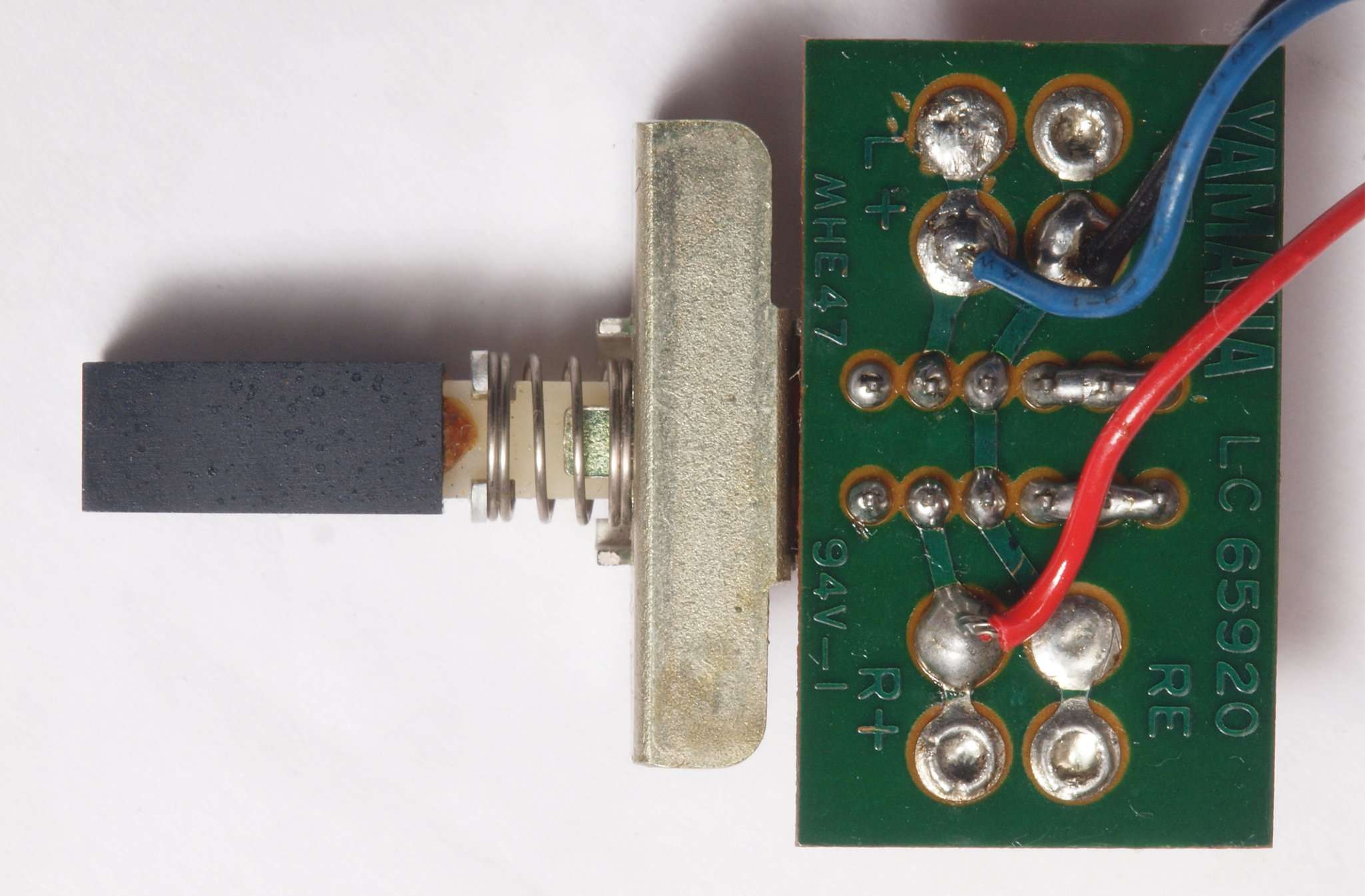 C63.修理前 LoudnessAMP基板裏、強力な接点復活材使用で、基板の銅箔に腐食が見られます。