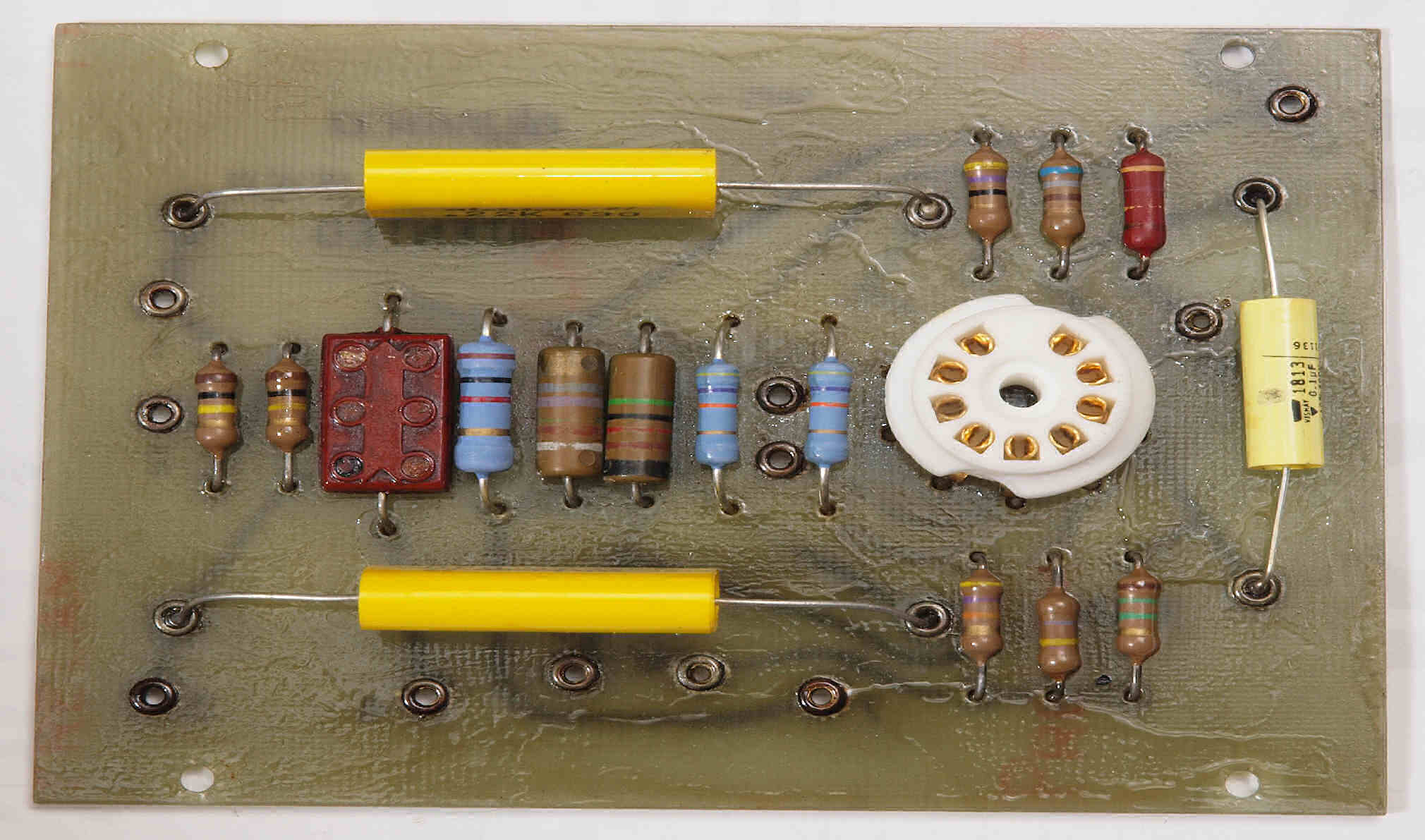 | C. 修理状況。画像をクリックすると、大きく(横幅2050ドット)表示されます。 C11. 修理前 前段6AN8基板。 |