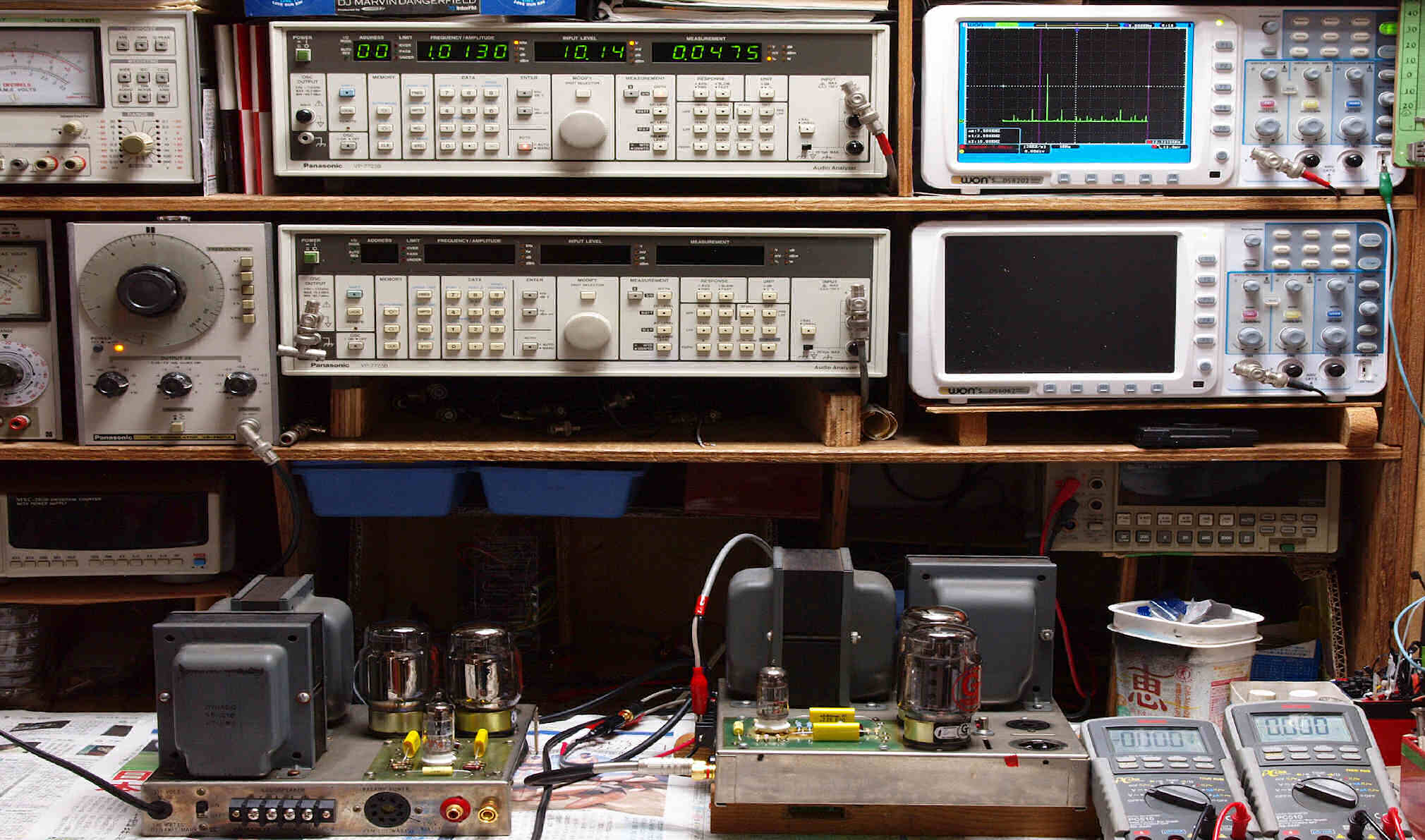 | E4. 完成 24時間エージング。 左は「Dynaco Mark V. 3台目」、右は「Musical Fidelity A−1. 12台目」 |