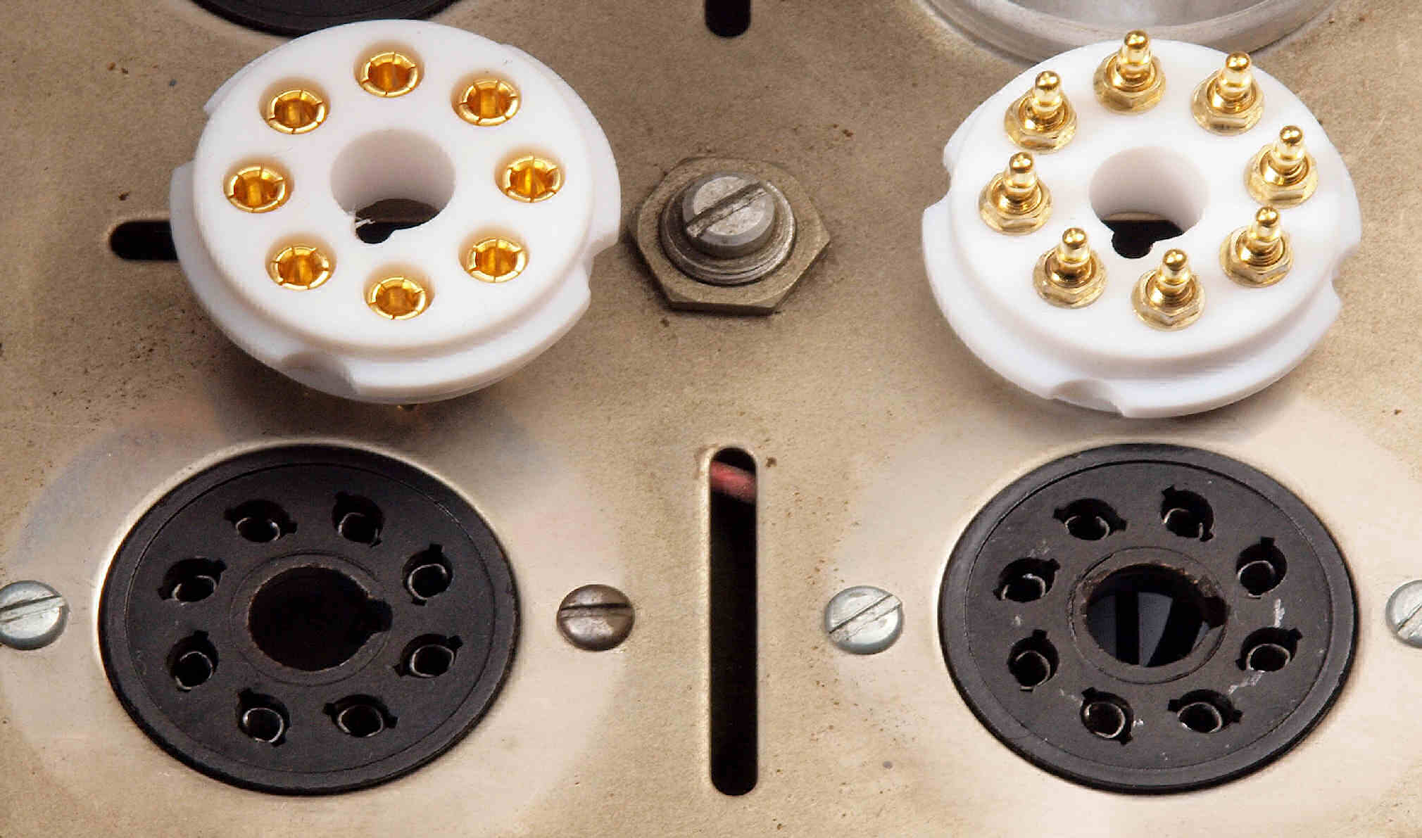 | A71. 点検中 KT−88用USソケット。 上=テフロン製USソケット、下=ベーク製USソケット。 | ||||||||||||||||||||||||||||