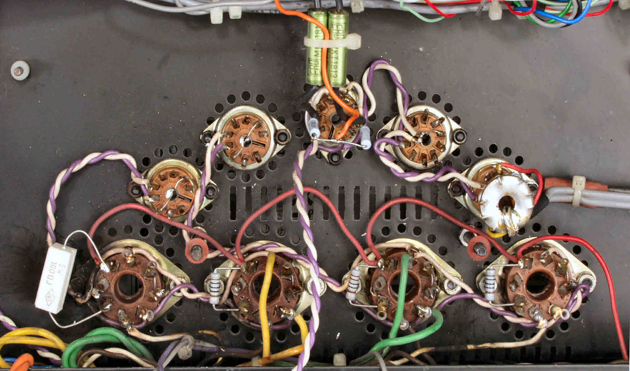 | C−1B. 修理後 ヒーター整流・メインAMP 抵抗4個、電解コンデンサー6個交換 |