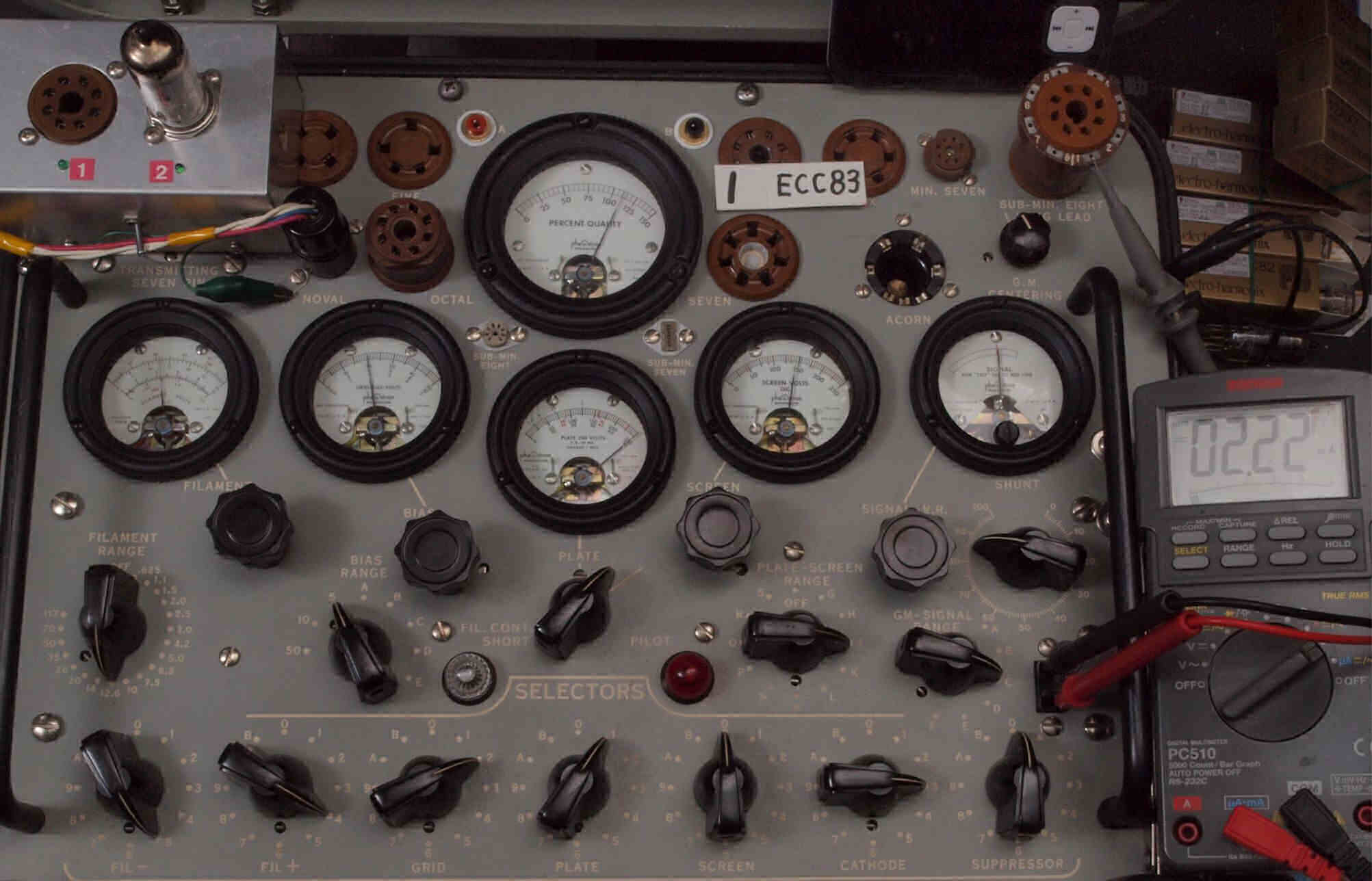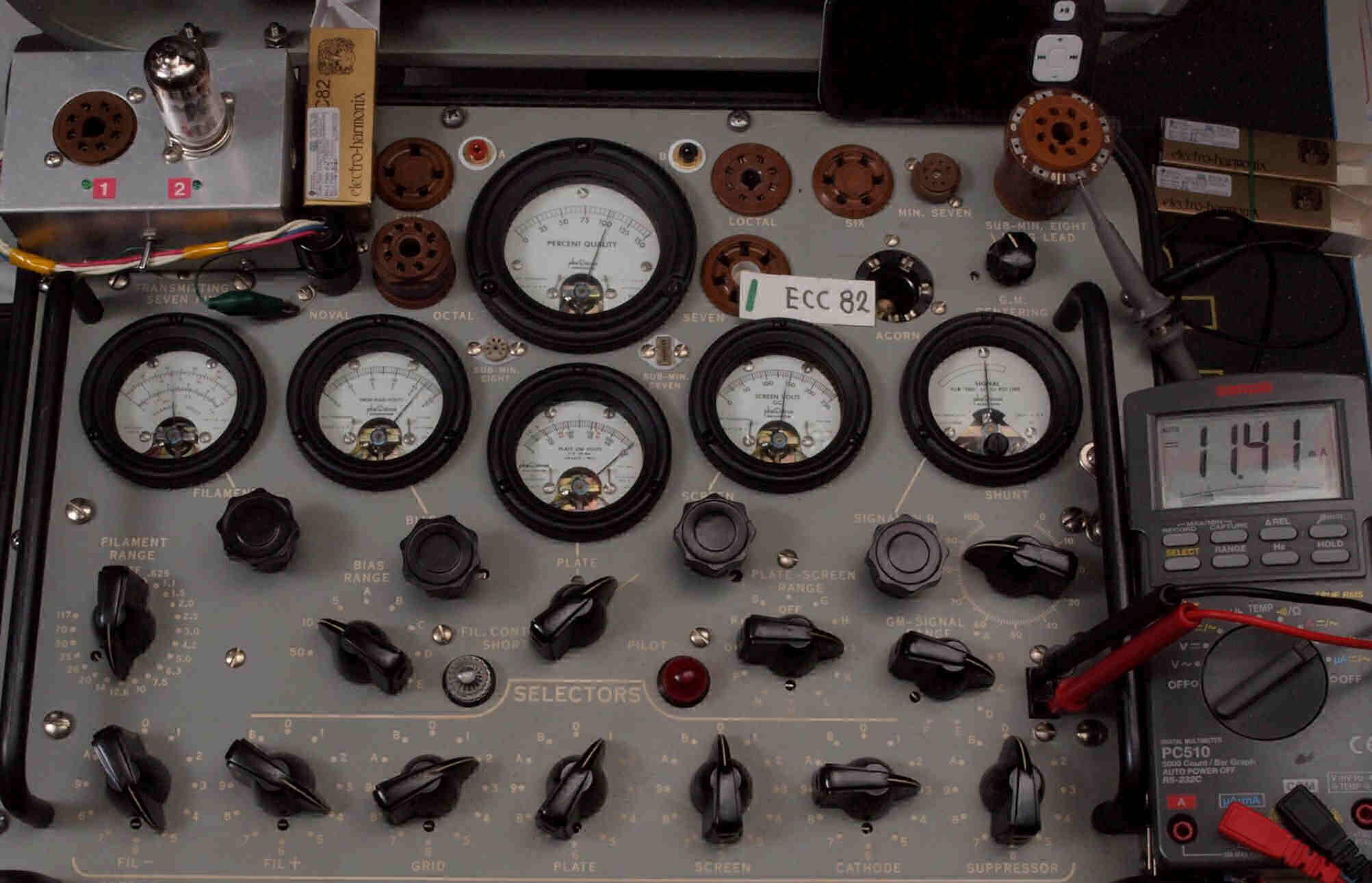 V31. 購入真空管「ECC82」1本目ユニット1測定。 Gm=2000μmho、Ip=11.41mA。