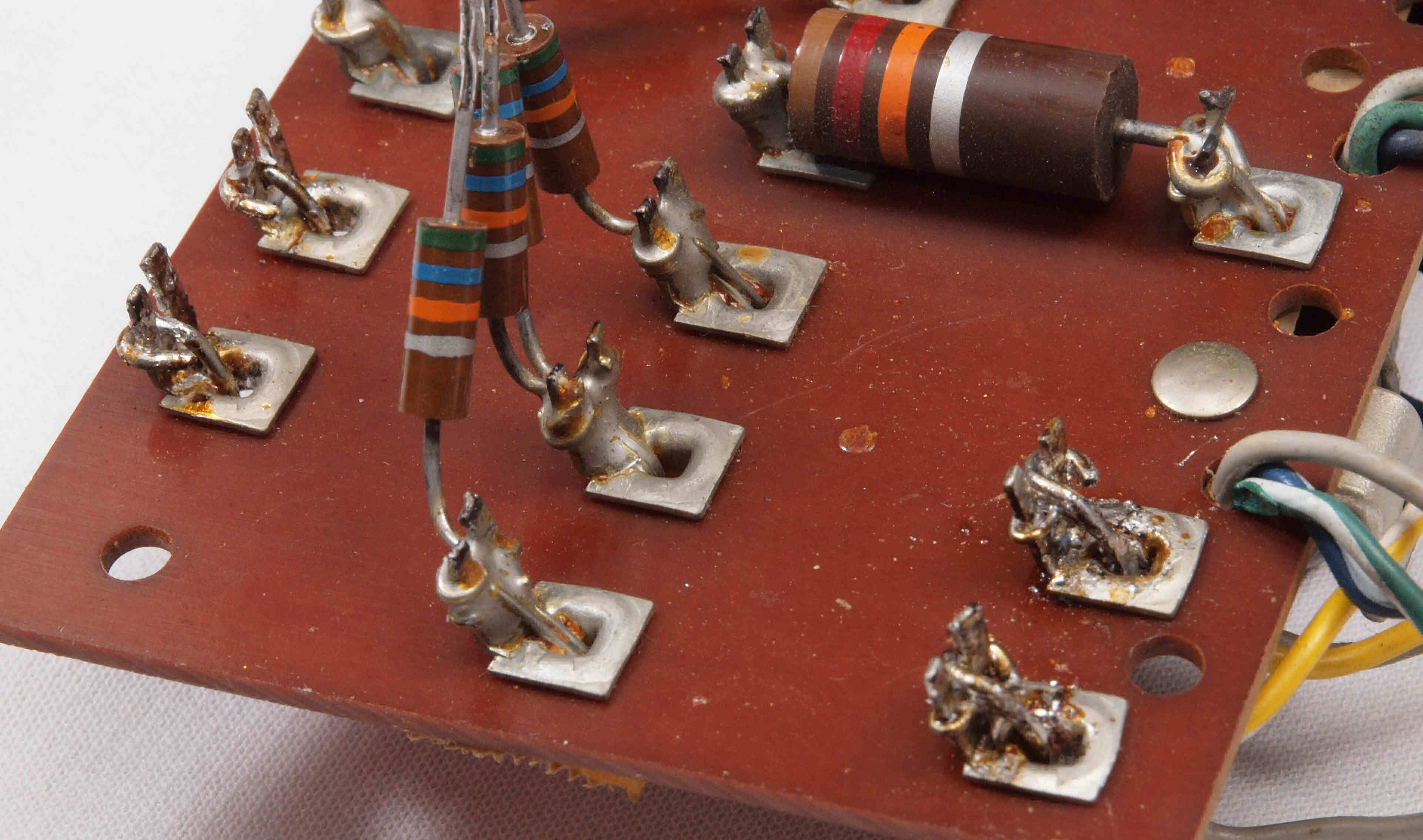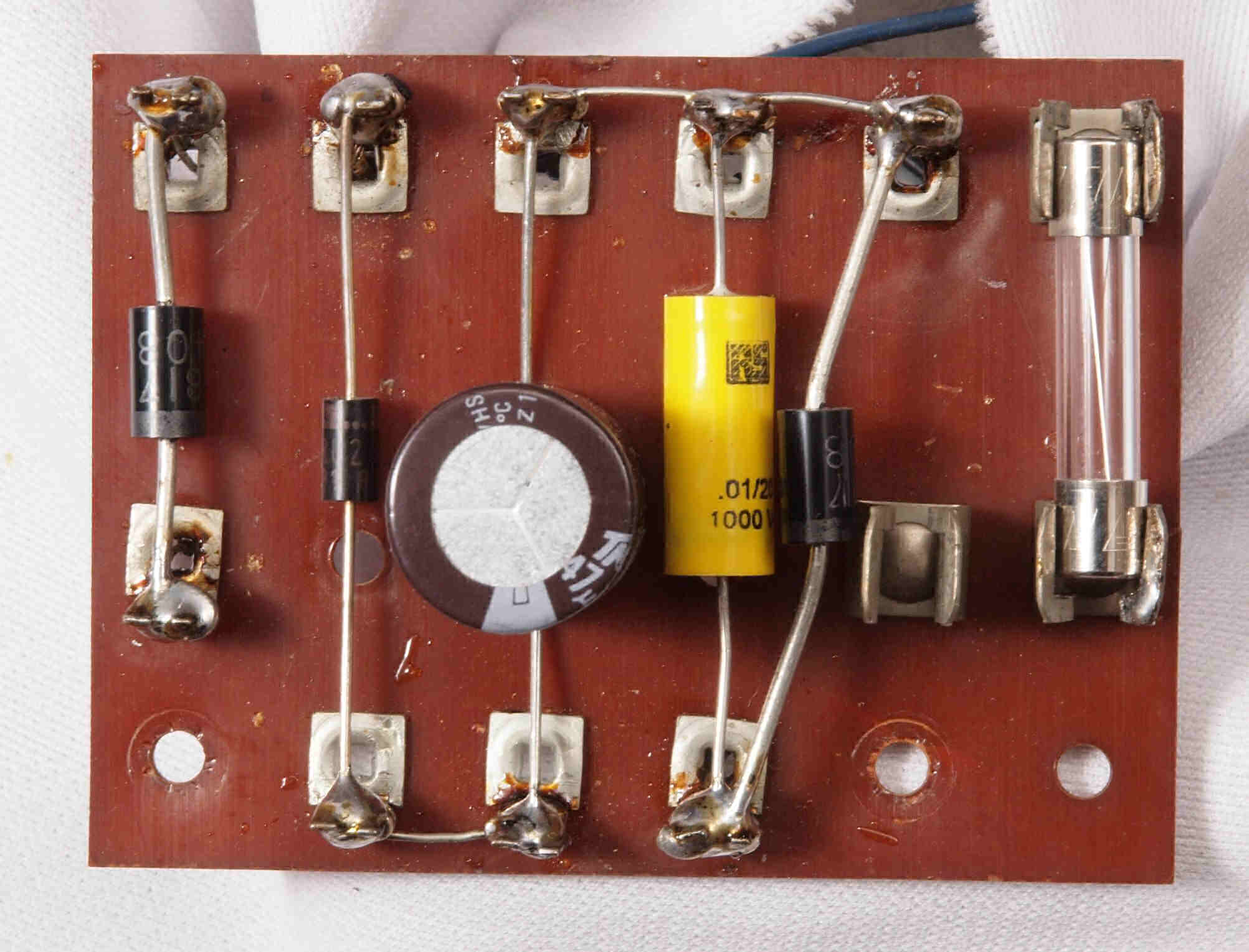 A27. 点検中 整流基板、下から見る。整流ダイオード、バイアスセレンはダイオードに交換されている。